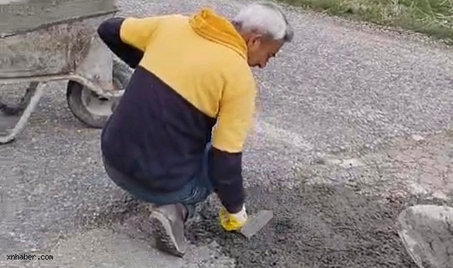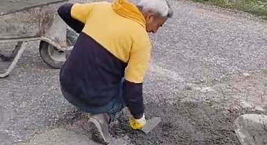 "Hizmet Beklemekten Yorulduk!" Tomarzalılar Kazmayı Küreği Alıp Bozuk Yola Beton Döktü