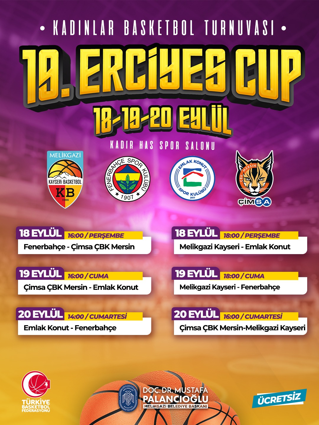 Melikgazi Kayseri Basketbol Spor Kulübü, bu yıl 19.’sunu düzenleyeceği geleneksel Erciyes Cup Basketbol Turnuvasına ev sahipliği yapacak. 18-19-20 Eylül tarihlerinde Kadir Has Spor Salonu’nda gerçekleştirilecek turnuvada, Melikgazi Kayseri Basketbol, Fenerbahçe, Emlak Konut ve Çimsa ÇBK Mersin kadın basketbol takımları mücadele edecek.
