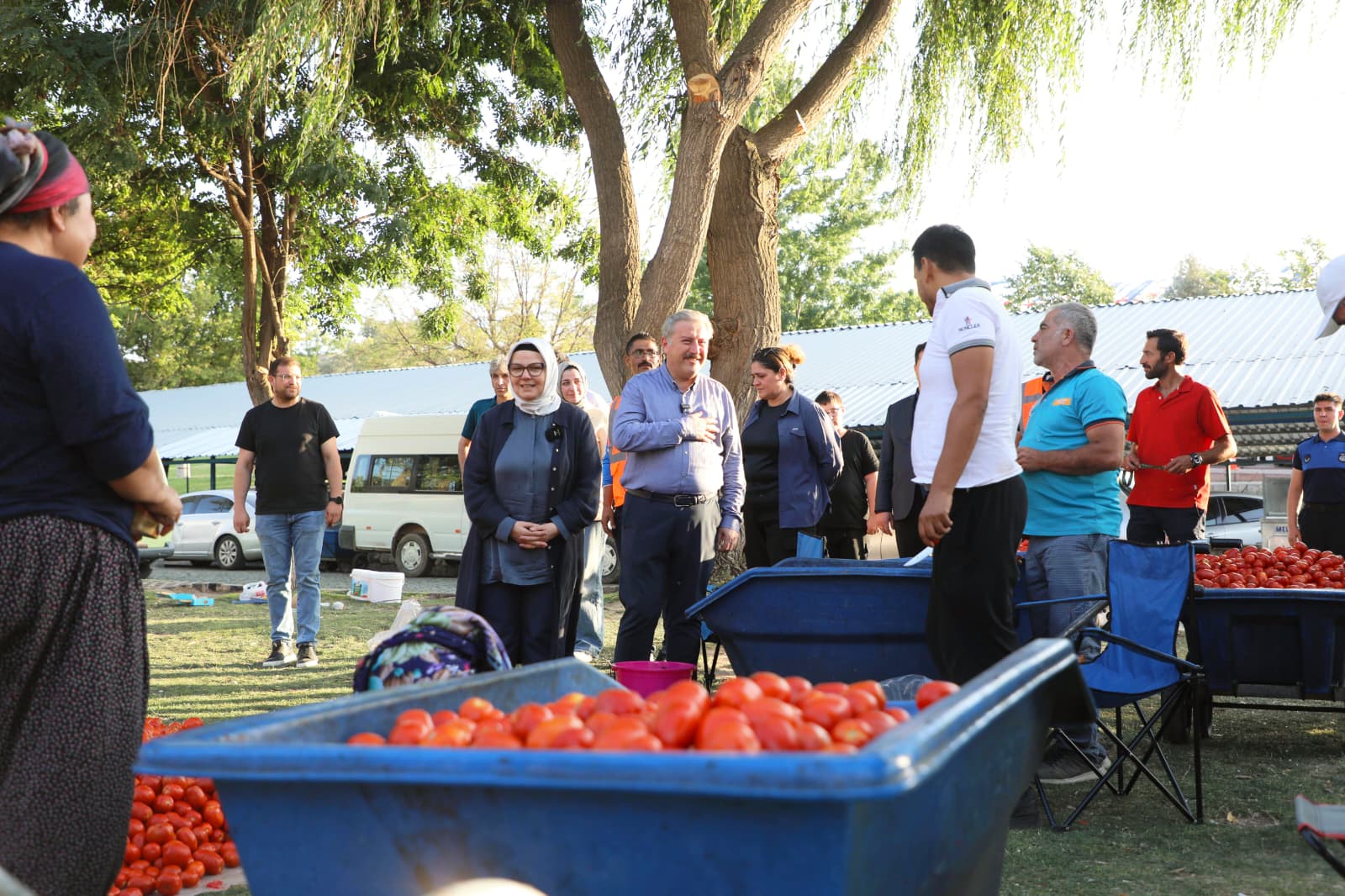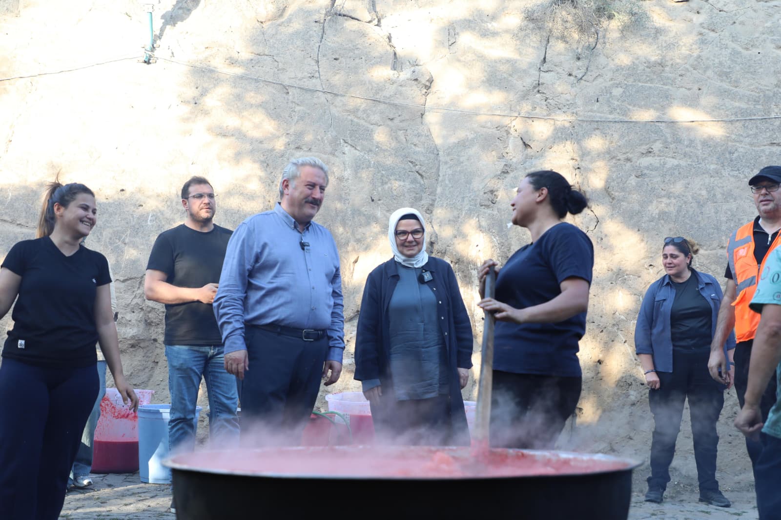 Palancıoğlu, salça kaynatma alanlarında 1,5 ay boyunca, 150 personelle 7/24 hizmet verdiklerini ifade ederek, “Sekiz yıldır vatandaşlarımızı bu güzel etkinlikle buluşturuyoruz. Mimar Sinan Evliyalar, Eskişehir Bağları ve Kocatepe Mahallesi olmak üzere üç bölgede, 1,5 ay boyunca 150 personelimizle 24 saat hizmet veriyoruz. Her yıl 3.500-4.000 aile bu hizmetten yararlanıyor ve tüm vatandaşlarımız oldukça memnun. Piknik havasında sucuklar yapılmakta, patatesler közleniyor. Vatandaşlarımız özellikle serin olması nedeniyle geceyi tercih ediyor; fakat gündüz de alanımız tamamen dolu oluyor. Rezervasyon sistemi ile çalışıyoruz. Bu süreç çok meşakkatli ve zor; bir belediyenin 1,5 ay boyunca 150 personelle 7/24 hizmet vermesi Türkiye’de nadir bir olay. Sekiz senedir devam eden bu etkinliğimizin önümüzdeki yıllarda da artarak sürmesini umut ediyoruz. Sayın Milletvekilimize ziyaretinden dolayı teşekkür ediyorum.” dedi.