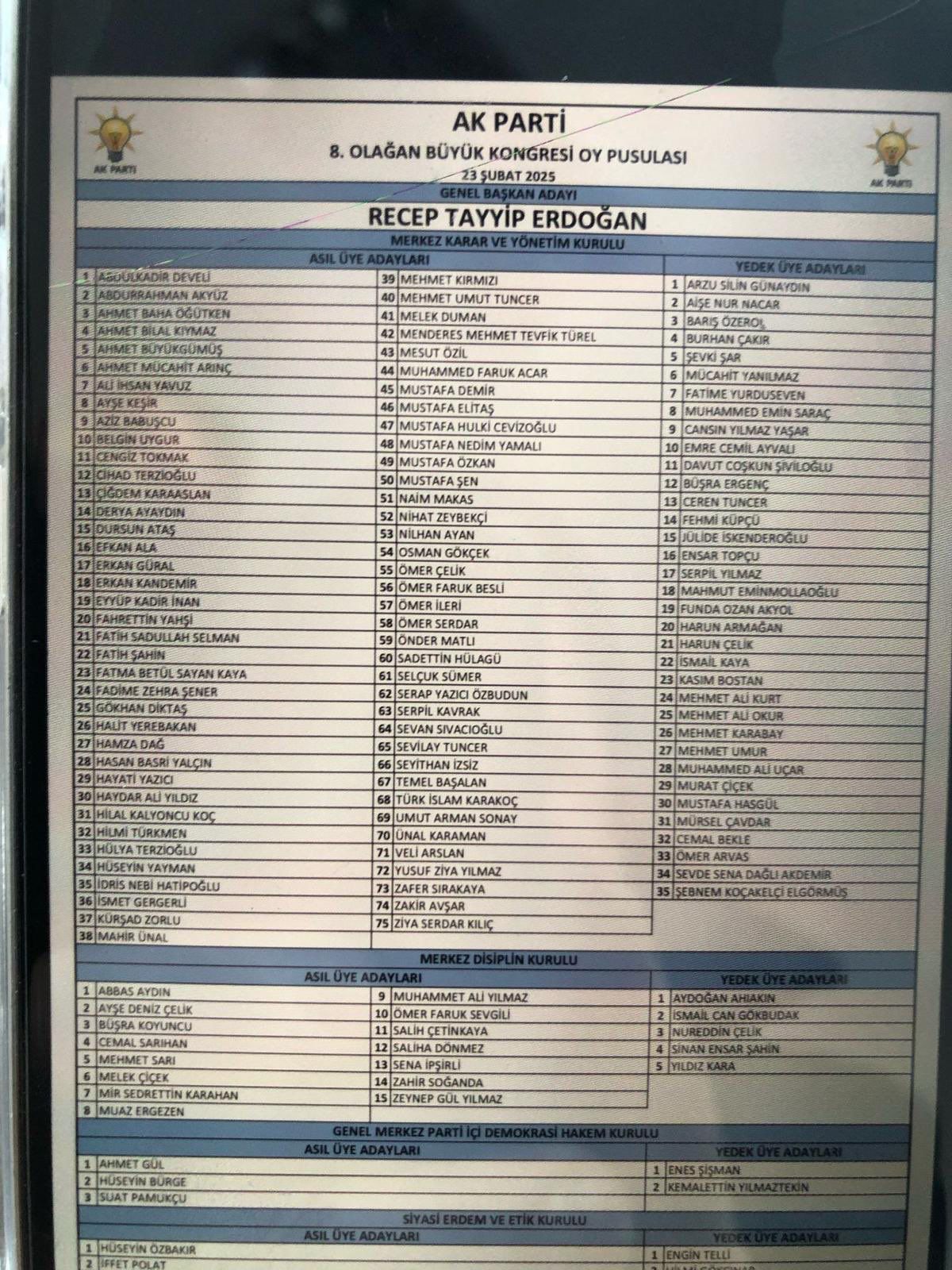 AK PArti 8. Olağanüstü Büyük Kongresi'nde Merkez Karar ve Yönetim Kurulu (MKYK), Merkez Disiplin Kurulu, Siyasi Erdem ve Etik Kurulu ile Genel Merkez Parti İçi Demokrasi Hakem Kurulunun yeni üyeleri belirlendi.İşte yeni MKYK listesinde yer alan isimler: