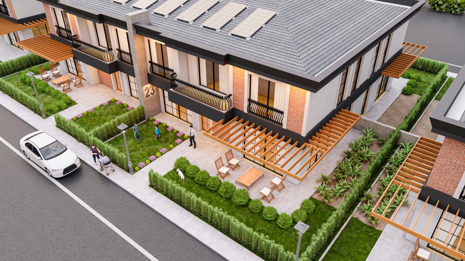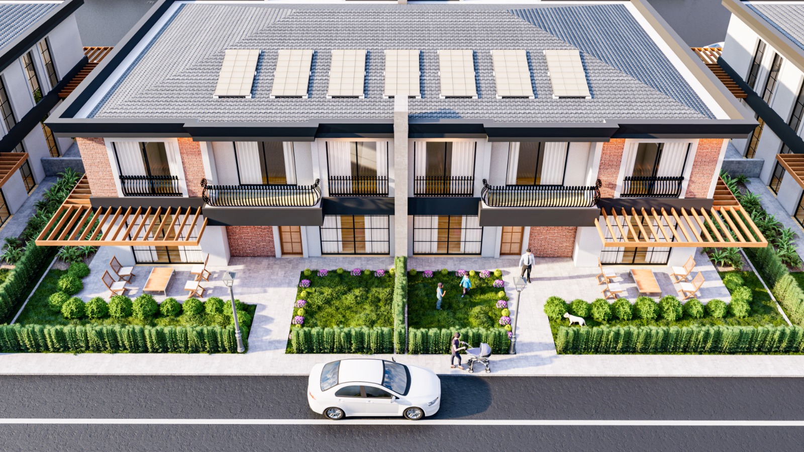 120 konutluk projede bahçeli evlerin yanı sıra sosyal tesisler, elektrikli araç altyapısı ve güneş enerji sistemi (GES) gibi çevreci çözümler sunulacak.