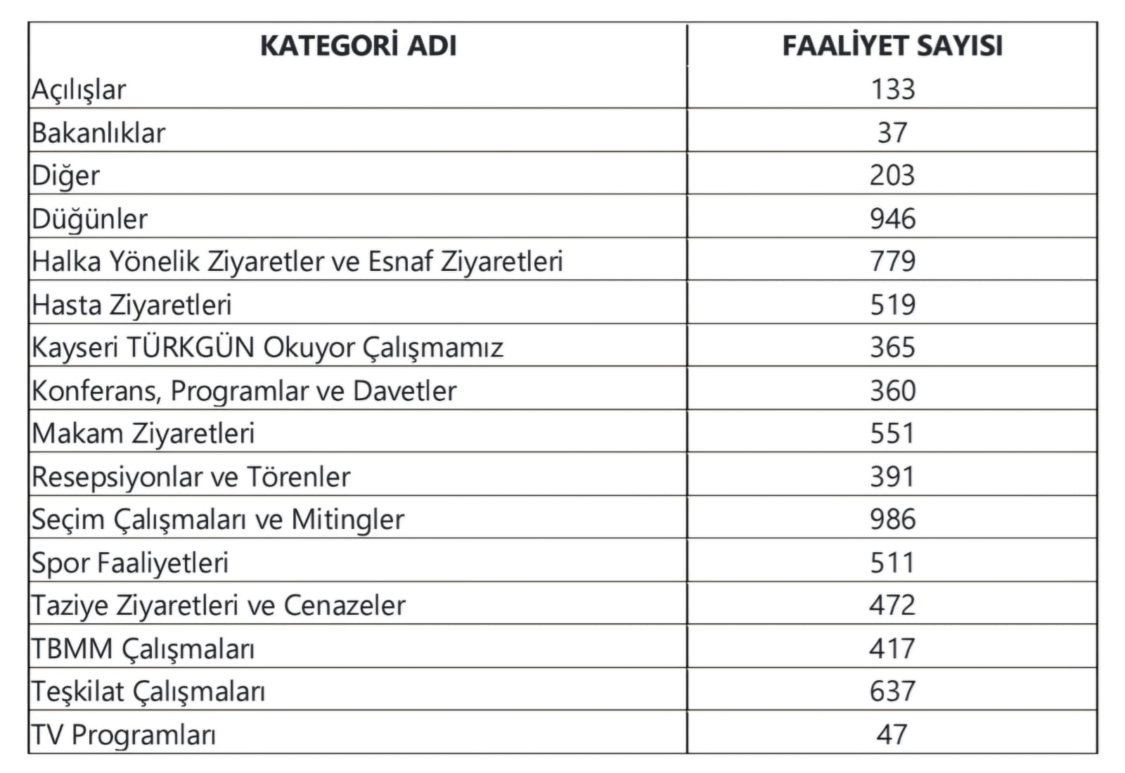 İlçeler bazında verilen önergeler; spor tesislerinden sağlık hizmetlerine, tarımdan ulaşıma, eğitim yatırımlarından altyapı sorunlarına kadar geniş bir yelpazeyi kapsadı. Özvatan, Bünyan, Develi, Hacılar, Kocasinan, Pınarbaşı, Sarıoğlan, Sarız, Talas, Tomarza, Yeşilhisar ve Akkışla ilçeleriyle ilgili çok sayıda başlık TBMM gündemine taşındı.