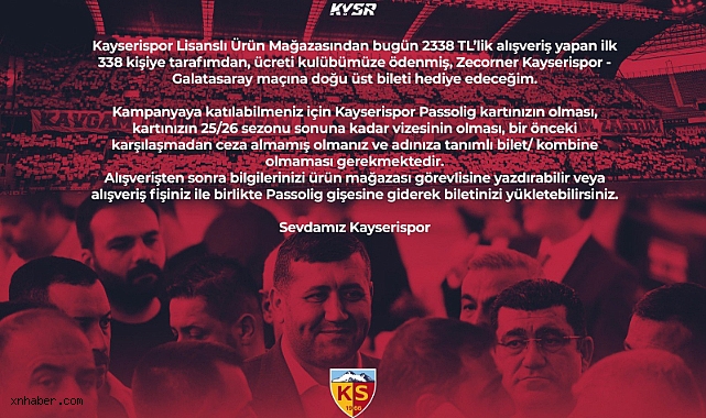 MHP Kayseri Milletvekili Baki Ersoy, “Sevdamız Kayserispor” vurgusuyla taraftara bir jest yaptı. Geçtiğimiz sezon 38 binin üzerinde bilet hediye ederek küskün taraftarları yeniden tribüne kazandıran Ersoy, bu sezon da Kayserispor Lisanslı Ürün Mağazası’ndan forma alan taraftarlara bilet hediye edeceğini açıkladı.338 Taraftara Ücretsiz BiletErsoy, sosyal medya ve basın açıklamasında, “Kayserispor Lisanslı Ürün Mağazasından bugün 2 bin 338 TL’lik alışveriş yapan ilk 338 kişiye, tarafımdan ücreti kulübümüze ödenmiş Zecorner Kayserispor - Galatasaray maçına doğu üst bileti hediye edeceğim” dedi.Baki Ersoy, kampanyaya katılmak isteyen taraftarların bazı şartları yerine getirmesi gerektiğini de belirtti:Kayserispor Passolig kartına sahip olmak,Kartın 25/26 sezonu sonuna kadar vizesinin yapılmış olması,Bir önceki karşılaşmadan ceza almamış olmak,Adına tanımlı bilet veya kombine olmaması.Kayserispor’un sıkıntılarının çözümünde önemli rol oynayan ve transfer tahtasının açılmasına katkı sağlayan Ersoy’un bu jesti, taraftarların maça ilgisini artıracak gibi görünüyor.