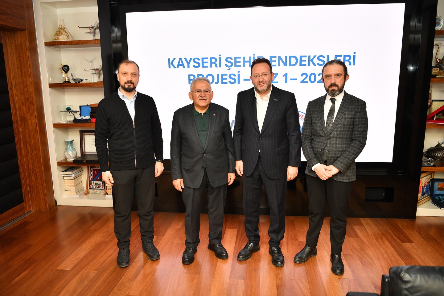 MÜSİAD Kayseri Şubesi Başkanı Ferhat Akmermer, Yönetim Kurulu Üyesi Mehmet Özbağdatlı ve Şube Müdürü Serkan Soydan, Kayseri Şehir Endeksleri (KAŞE) Projesi’nin Faz 1 sonuç raporunu Başkan Büyükkılıç ile paylaştı. Büyükkılıç, ziyaret için teşekkür ederek MÜSİAD üyelerine çalışmalarında başarılar diledi.