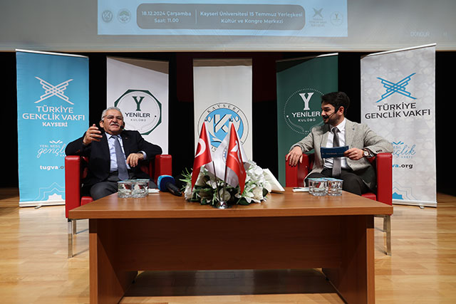 Kayseri Büyükşehir Belediye Başkanı Dr. Memduh Büyükkılıç, Türkiye Gençlik Vakfı (TÜGVA) Kayseri İl Temsilciliği tarafından düzenlenen Kariyer Söyleşisi’nde gençlerle bir araya geldi. Kayseri Üniversitesi 15 Temmuz Yerleşkesi Kültür ve Kongre Merkezi’nde gerçekleşen etkinlikte, Başkan Büyükkılıç, 30 yıllık belediyecilik tecrübelerini ve gençlere yönelik hayata geçirilen projeleri anlattı.