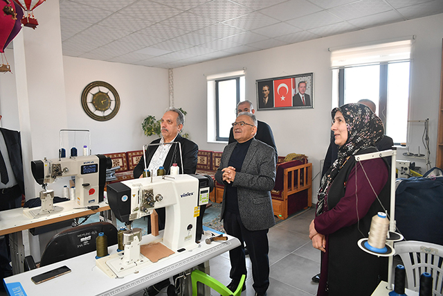 Kayseri Büyükşehir Belediye Başkanı Dr. Memduh Büyükkılıç, Talas ilçesinin Başakpınar Mahallesi’nde faaliyet gösteren Başakpınar Umay Kadın Kooperatifi’ni ziyaret etti. Başkan Büyükkılıç, kooperatifin yürüttüğü projeleri yerinde inceleyerek, kadın üreticilerle sohbet etti ve onların üretim süreçleri hakkında bilgi aldı. Kooperatifin üretim kapasitesinin arttığını ve kadınların önemli bir başarı hikâyesi yazdığını vurgulayan Büyükkılıç, “Hanımefendiler, fırsat verilince neler yapacaklarının en güzel örneklerini sergiliyorlar. Meşhur markaların ürünlerinin burada yapıldığını görmekten memnuniyet duyuyoruz” dedi.
