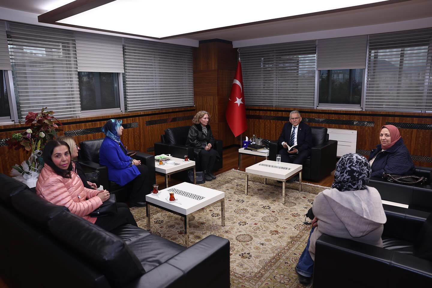 Cumhuriyet Kadınları Derneği Kayseri Şube Başkanı Feride Sakarya ve heyetinin ziyareti ise kadın odaklı sosyal projelerin değerlendirilmesine sahne oldu. Başkan Büyükkılıç, nazik ziyaretlerinden ötürü Sakarya ve ekibine teşekkür etti.