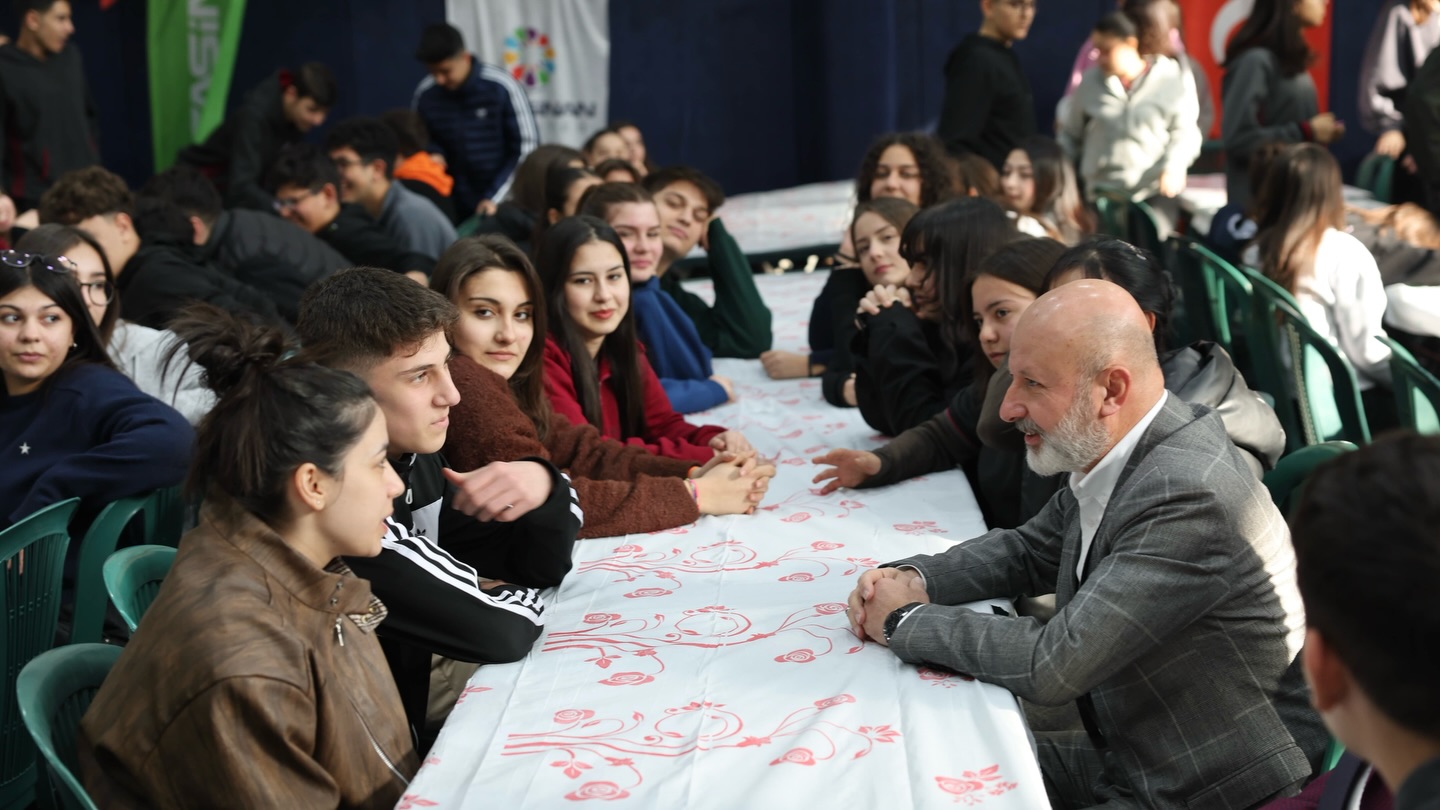 Öğrencilerin yoğun ilgisi ve “En büyük başkan bizim başkan” tezahüratlarıyla karşılanan Başkan Çolakbayrakdar, gençlerle samimi bir ortamda sohbet etti. Program kapsamında Kafe Sinan’da hazırlanan özel “Kocaburger” ikram edilirken, öğrencilerin talep ve beklentileri de birebir dinlendi.