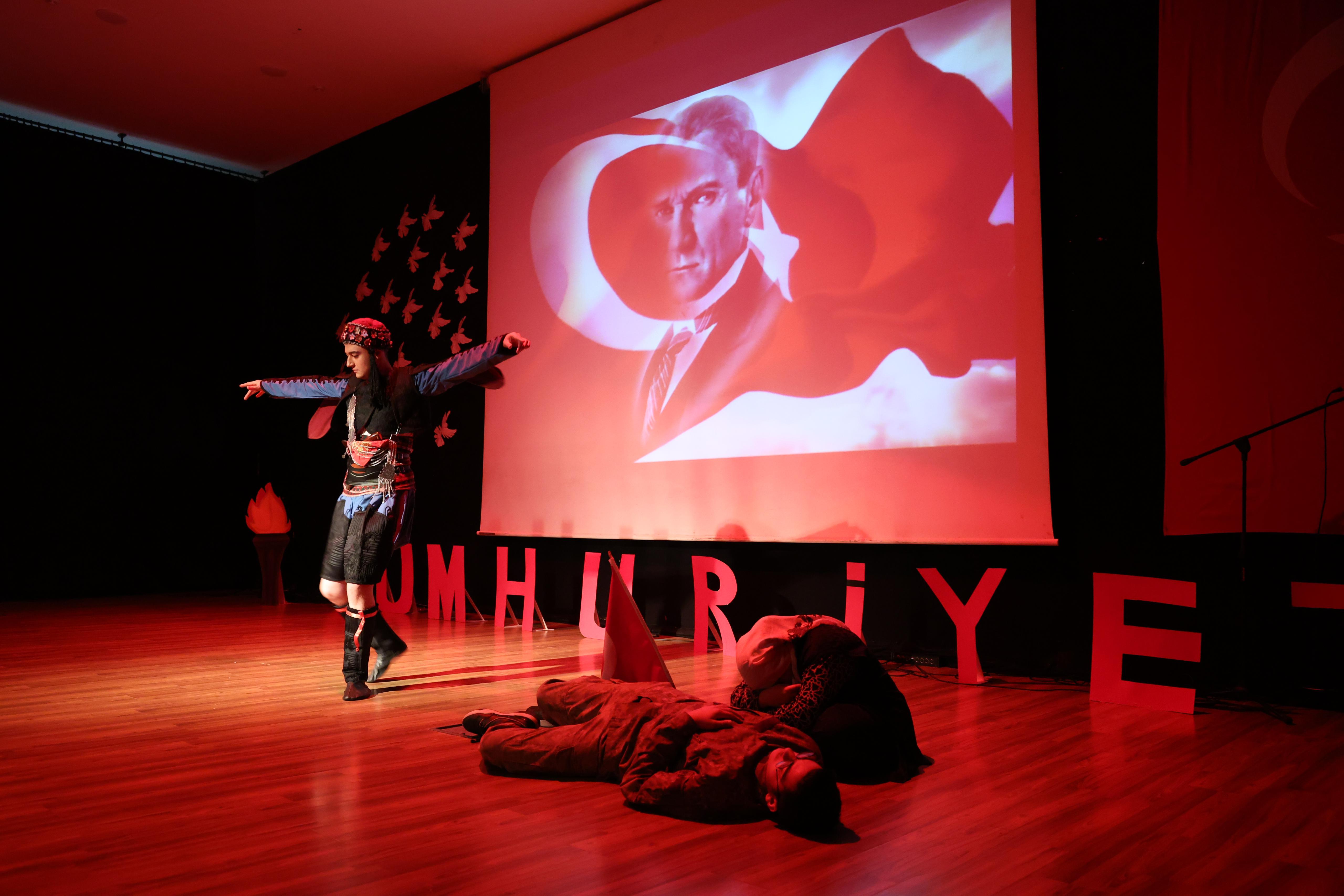 Hacılar ilçesinde Cumhuriyet’in 101. yılı dolayısıyla Tevfik İleri İmam Hatip Ortaokulu ve Lisesi öğrencilerinin düzenlediği kutlama programı, Şehit Polis Ahmet Cihan Kilci Kültür Merkezi'nde yoğun bir katılımla gerçekleşti.