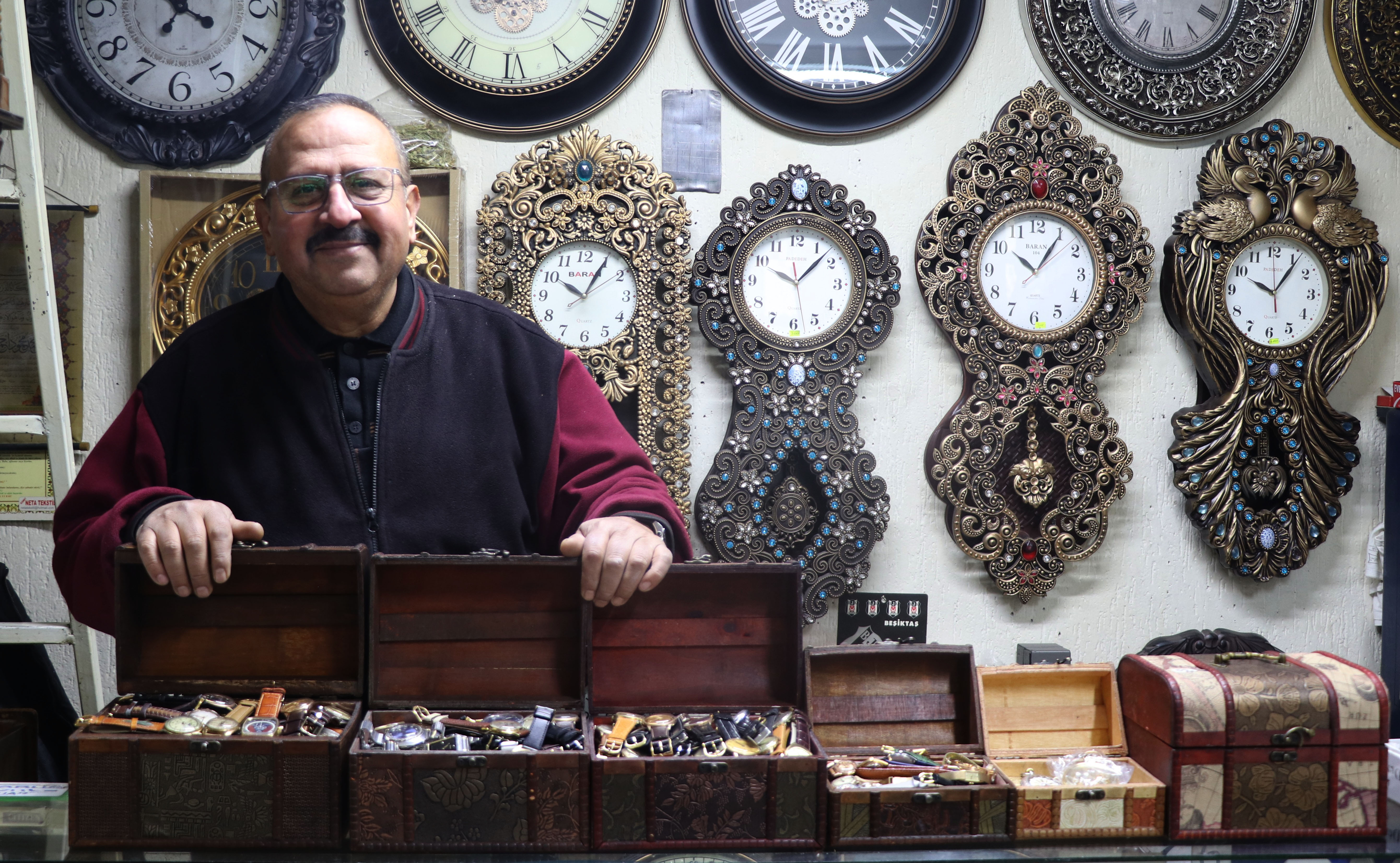 Kayseri’de yaşayan evli ve 2 çocuk babası Ahmet Rıhtım, 13 yaşındayken babasının yanında çırak olarak saatçiliğe başladı. Geçen süreçte mesleği babasından teslim alan Rıhtım, saat satışı ve bozuk saatlerin tamirini yapıyor. Mesleğini 50 yıldır sürdüren Rıhtım, 40 yıldan bu yana beğendiği saatleri satmayıp 500 parçalık koleksiyon oluşturdu. En eskisinin 1850 senesinden kalma İsviçre yapımı saat olan koleksiyonda 100 farklı markadan saat bulunuyor. Yaptığı koleksiyonu anlatan Ahmet Rıhtım, "Koleksiyon yapmaya 1985’te hoşuma giden saatleri ayırarak başladım. Beğendiğim saatleri satmayıp kendime ayırdım. Şunu satma, bunu satma derken 500 saate ulaştık. Koleksiyondaki en eski parça 1850 yılına ait İsviçre yapımı bir saat. Saat koleksiyonumda 100 çeşit marka var. 1985’te başladım. 40 senedir biriktiriyorum. Saatçiliğe babamın yanında çırak olarak başladım. 50 yıllık saatçiyim. Koleksiyonumda 1850’den 1950’ye kadar saat bulunuyor" diye konuştu.
