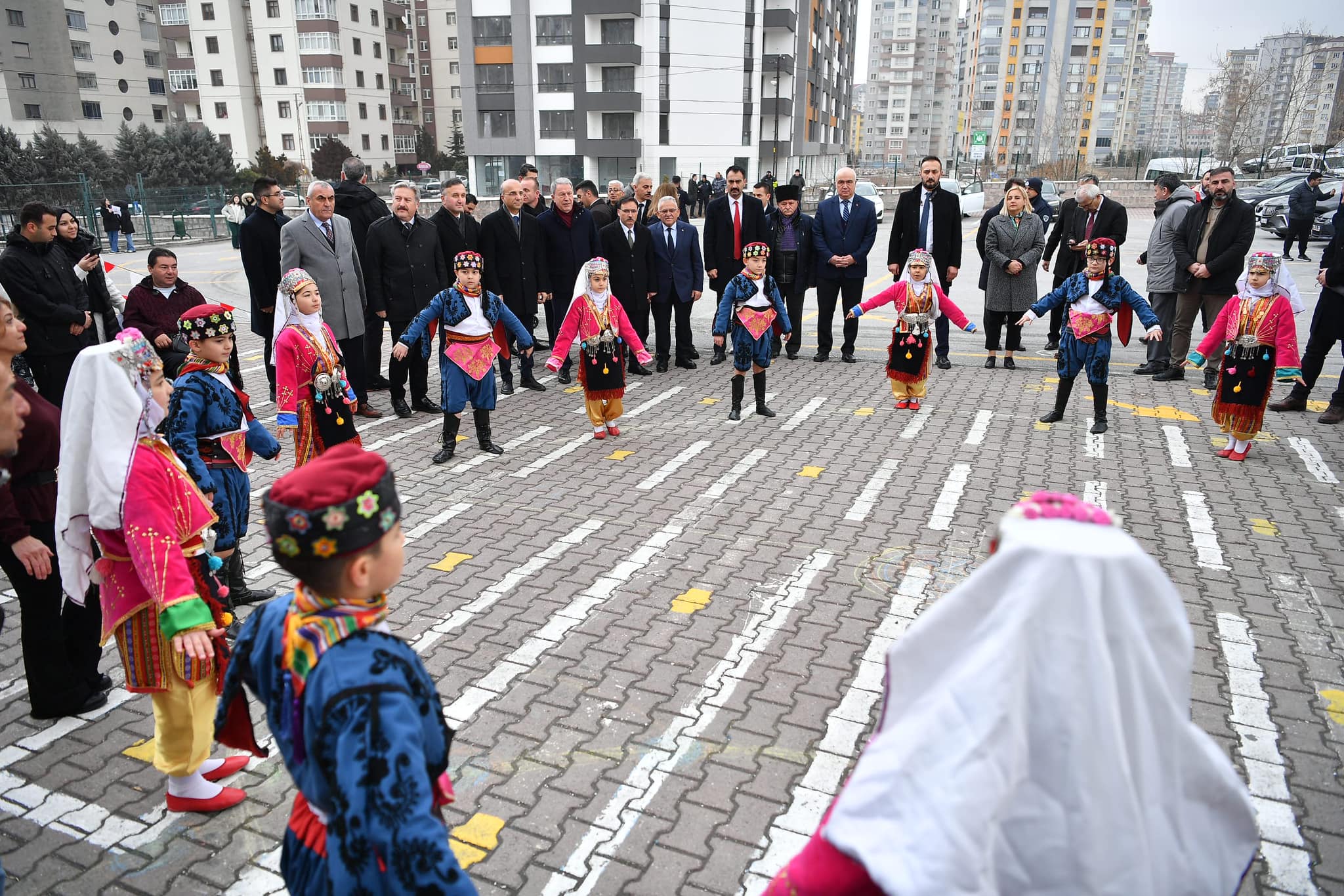 Tören, öğrencilerin Türk bayrakları ve çiçeklerle protokolü karşılamasıyla başladı. Halk oyunları gösterisi büyük ilgiyle izlenirken, protokol üyeleri öğrenciler ve öğretmenlerle hatıra fotoğrafı çektirdi.