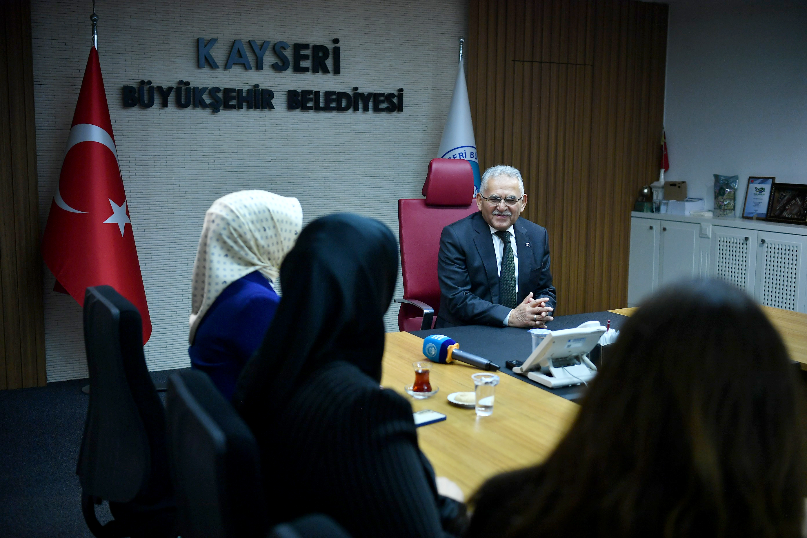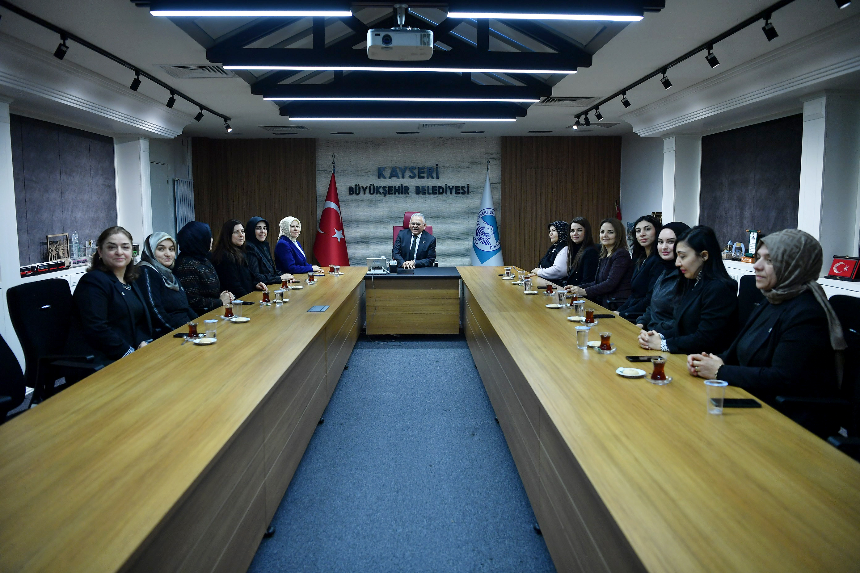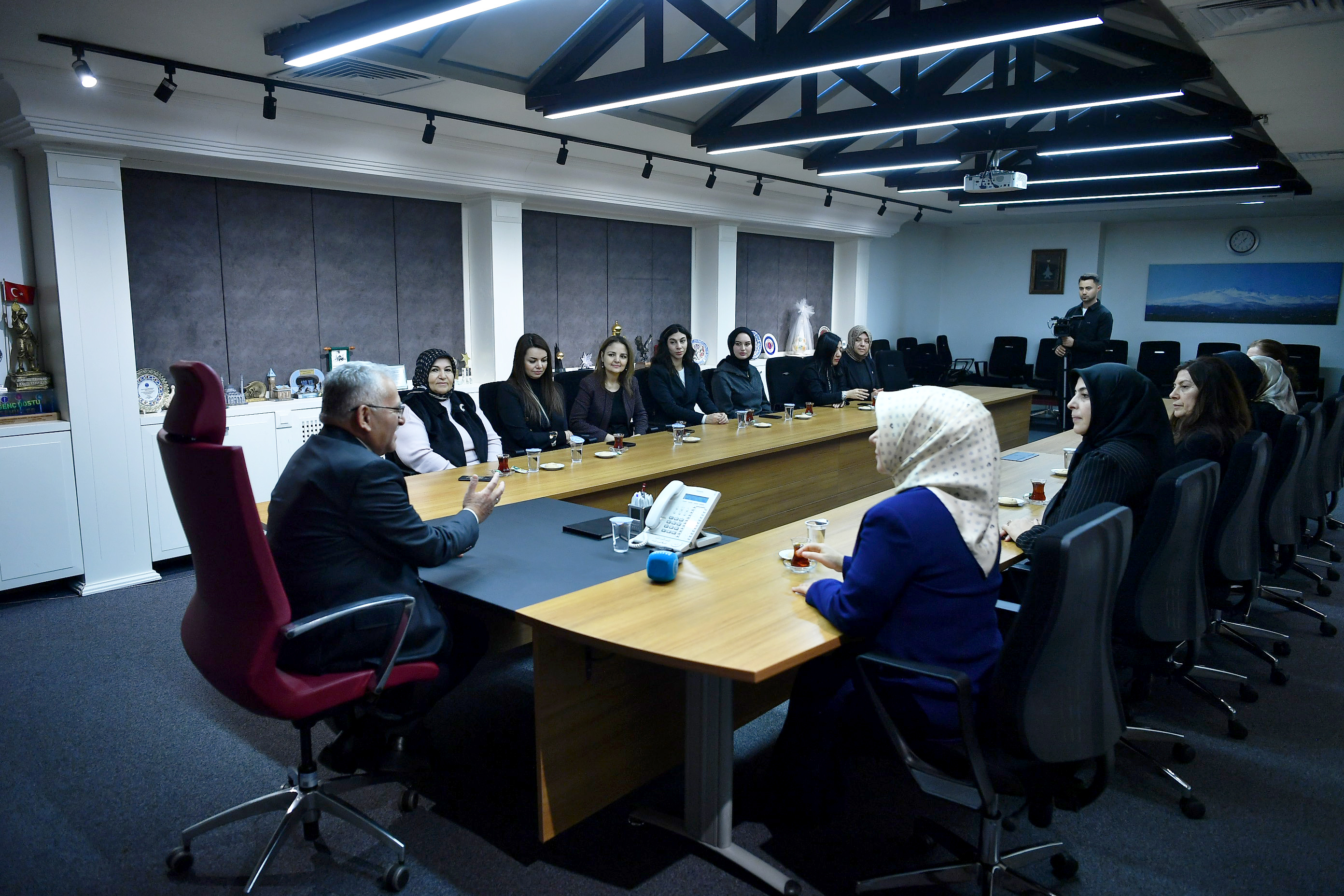 Kayseri Büyükşehir Belediye Başkanı Dr. Memduh Büyükkılıç, AK Parti Kayseri İl Kadın Kolları Başkanı Meral Koşar ve yönetimini nezaket ziyaretinde konuk etti. Başkan Büyükkılıç, ziyaretten duyduğu memnuniyeti dile getirerek, kadın elinin değdiği projelerin anlamlı ve önemli olduğunu vurguladı.