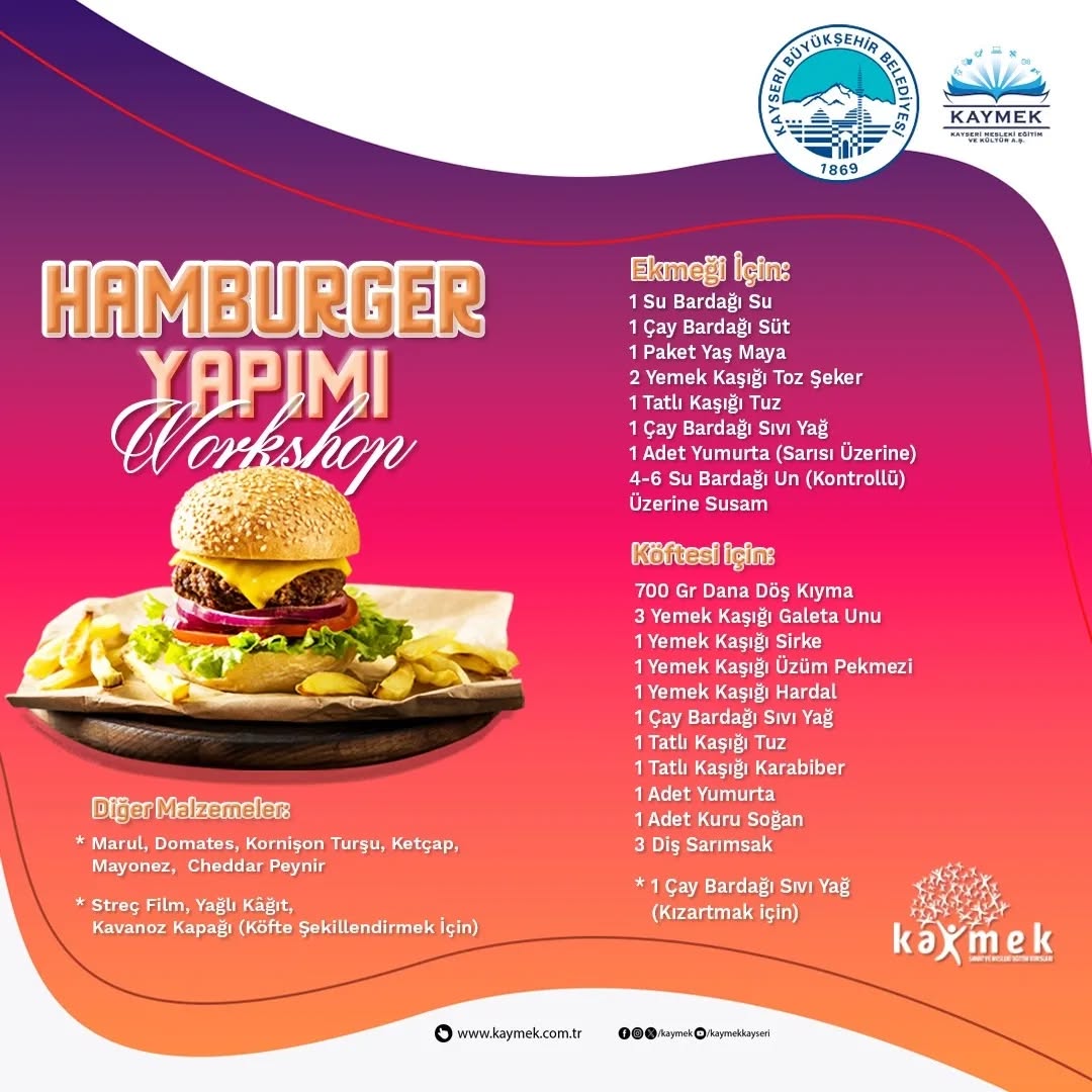 2024-2025 Eğitim Öğretim Yılı boyunca ücretsiz sınav hazırlık kursları ve okula destek programlarıyla öğrencilerin yanında olan KAYMEK, tatil dönemlerinde de öğrencileri yalnız bırakmıyor. Bu kapsamda, yarıyıl tatiline özel bir etkinlik programı hazırlandı.29 Ocak Çarşamba günü KAYMEK Akademi Tesisi’nde düzenlenecek etkinlikte, bileklik yapımı, ebru yapımı, kitap ayracı yapımı ve oyuncak bebek yapımı gibi eğitici ve eğlenceli workshoplar yer alacak. Ayrıca, hamburger yapımı ve kalem kutusu yapımı gibi farklı çalışmalar da katılımcılar tarafından gerçekleştirilecek. Bu etkinliklerde kullanılacak bazı malzemeler, katılımcılar tarafından temin edilecek.
