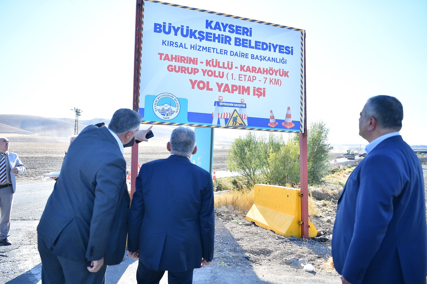 Kayseri Büyükşehir Belediye Başkanı Dr. Memduh Büyükkılıç, Büyükşehir Belediyesi tarafından Tahirini, Küllü ve Karahöyük Mahalleleri arasında yürütülen toplam 7 kilometrelik grup yolunun ilk etabını yerinde inceledi.Büyükşehir Belediyesi, şehir merkeziyle birlikte kırsal mahallelerde de yaşam kalitesini artıracak yatırımlarına devam ediyor. Bu kapsamda Başkan Büyükkılıç, yol yapım çalışmalarını inceleyerek Kırsal Hizmetler Daire Başkanlığı ekiplerinden bilgi aldı ve personele tatlı ikramında bulundu.Başkan Büyükkılıç, bölgede sıcak asfalt çalışmalarının başladığını belirterek şunları söyledi: