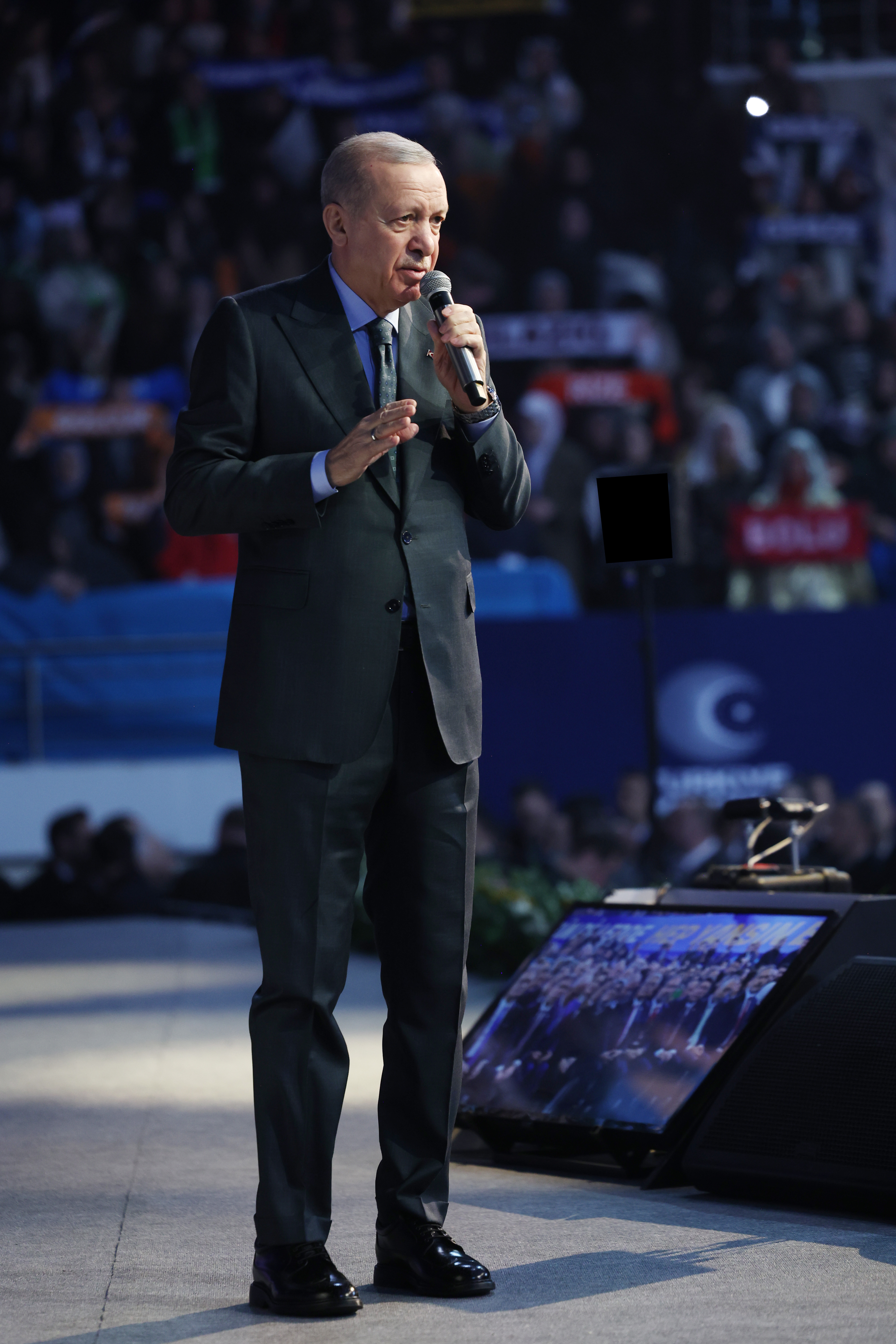 'KADINLARIN VE GENÇLERİMİZİN İSTİHDAMA KATILMARINI TEMİN EDECEĞİZ'Bir diğer önceliklerinin de istihdam olduğunu belirten Erdoğan, "İş ve çalışma hayatımızı, teknolojide ve yeni sosyolojide meydana gelen değişimlerle uyumlu hale getireceğiz. Kadınların ve gençlerimizin istihdama daha yoğun katılmalarını temin edeceğiz. Yükseköğretim sisteminde revizyona giderek, üniversitelerimizin şehirlerimizle bütünleştiği ve üretim süreçlerine aktif olarak katıldığı yeni bir model tesis edeceğiz. Nüfus politikalarında yeni bir dönemi başlatıyoruz. Alarm veren nüfus artış hızımızı yükseltecek, demografik bünyemizi güçlendireceğiz. Tamamlayıcı sigorta modelleri ile sosyal güvenlik sistemimizde etkinliği ve sürdürülebilirliği tahkim edeceğiz. Aile bazlı gelir tamamlayıcı sosyal destek sistemi ile ihtiyaç sahibi vatandaşlarımızın daha güçlü bir şekilde yanlarında olacağız. Erişilebilir ve kaliteli sağlık hizmetlerini daha da geliştiriyoruz. Yenilikçi sağlık endüstrileri ve ilaç sektörünün yerli ve milli imkanlarla geliştirilmesini destekleyeceğiz. Yargıda ihtisaslaşmayı sağlayacak, bilirkişilik müessesesini revize ederek, makul sürede yargılanma hakkını güçlendireceğiz. Bireysel hak ve özgürlüklerin zeminini daha da genişleteceğiz. Ceza infaz sisteminde değişikliğe giderek suç-yaptırım-infaz dengesini iyileştireceğiz. Demokrasimizi; yeni, sivil, kuşatıcı bir anayasayla taçlandırma hedefimizi muhafaza ediyoruz" dedi.PARTİYE KATILANLARA ROZET TAKTICumhurbaşkanı Erdoğan, konuşmasının ardından İYİ Parti’den istifa edip AK Parti'ye katılan Ünal Karaman ve Mehmet Selim Ensarioğlu ile Gelecek Partisi’nden istifa eden Serap Yazıcı Özbudun'a rozetlerini takarak, tebrik etti. Cumhurbaşkanı Erdoğan, AK Parti TBMM Grup Başkanı Abdullah Güler, AK Parti Genel Başkan Yardımcısı Erkan Kandemir ve milletvekilleri ile hatıra fotoğrafı çektirdi.