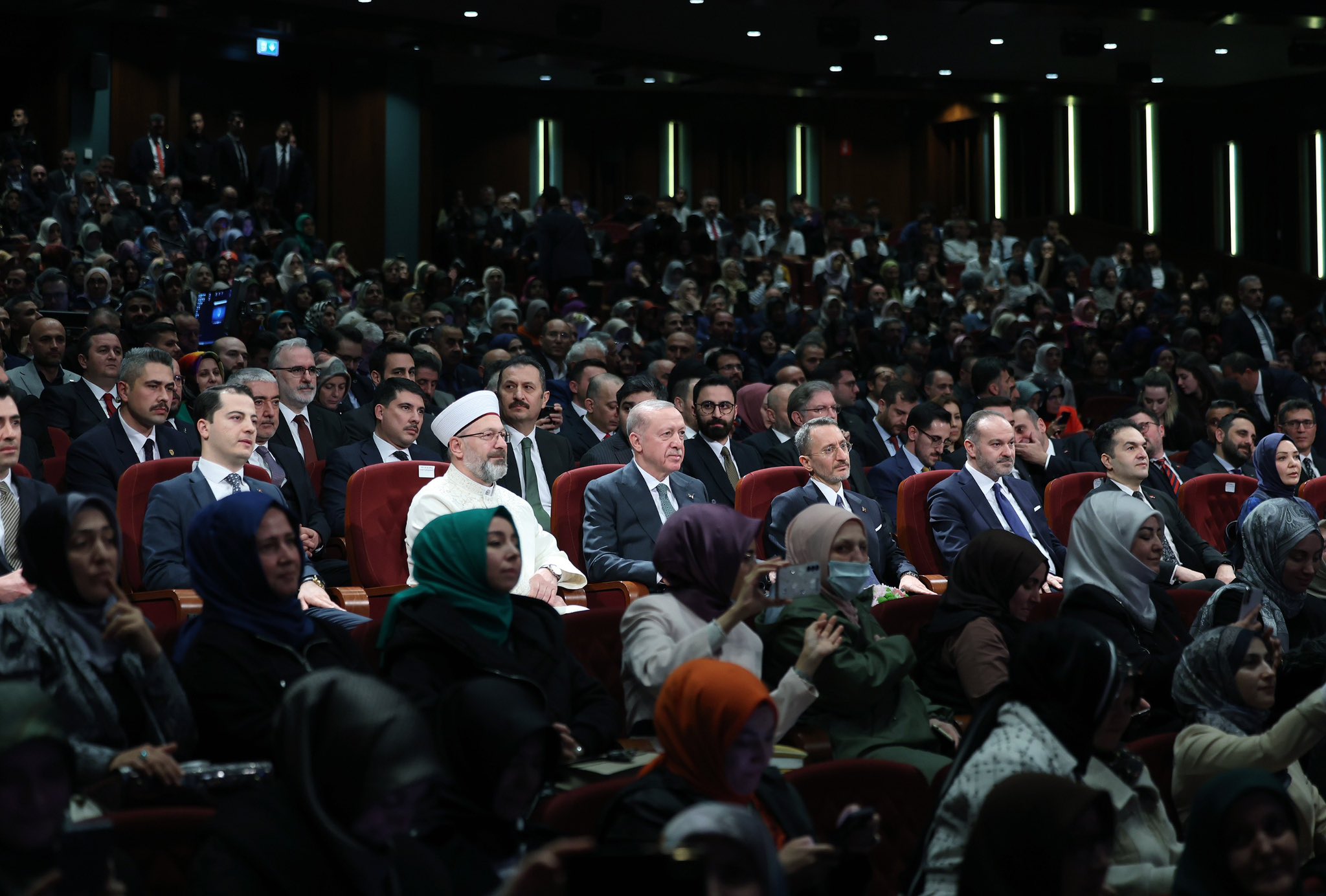 'BİZİ İÇERİDEN ZAYIFLATAN BU KÖTÜ GİDİŞE DUR DEMEK ZORUNDAYIZ'Bu olumsuz tablonun ortaya çıkmasında küresel sistemin efendileri kadar İslam dünyasındaki ataletin ve dağınıklığın da payı olduğunu vurgulayan Erdoğan, "Kendi iç meselelerimizle uğraşmaktan maalesef dış dünyaya, dışarıdaki fırsatlara yeterince odaklanamıyoruz. Kimi zaman mezhep, köken, kabile taassubu, Müslümanları içten içe adeta çökertiyor. Dünyanın en genç nüfus yapısına sahip olmamıza rağmen geleceğimiz olan evlatlarımızı kardeş kavgasına kurban veriyoruz. Emperyalistlerin ördüğü fitne ve nifak duvarlarını bir türlü yıkamıyoruz. 14 asırdır her gün 5 defa aynı kıbleye döndüğümüz halde inancımızın bize emrettiği şekilde bir duvarın tuğlaları gibi kenetlenemiyoruz. İslam'ın evrensel kardeşlik mesajlarına teslim olamadığımız, hayatımıza tatbik edemediğimiz için ne yazık ki emperyalist güçlerin operasyonlarına açık hale geliyoruz. Gelinen noktada şu gerçeği kabul etmemiz şarttır; bizi içeriden zayıflatan bu kötü gidişe artık bir dur demek zorundayız" ifadelerini kullandı.'DAHA ADİL BİR DÜNYANIN MÜMKÜN KILINACAĞINA İNANIYORUM'Erdoğan, sözlerine şöyle devam etti:"Türk, Kürt, Arap, Farisi, Asyalı, Afrikalı, siyah, beyaz demeden İslam alemi olarak hep beraber vahdeti kuşanmak, kardeşliğimize sımsıkı sarılmak mecburiyetindeyiz. Yaralarımızı sarmak, güçsüzlerin sıkıntılarına son vermek istiyorsak aramızdaki birlik ve beraberliği güçlendirmemiz gerekiyor. Bunun için Kur'an ve sünnetin ışığında yeni bir sayfa açmamız, aramızdaki anlaşmazlıkları bir an önce çözüme ulaştırmamız icap ediyor. Yakın bir tarihe kadar dünyaya nizam veren geçmişimize baksak, ecdadın izinden gitsek inanın bu bile bizim için çok önemli başlangıç olacaktır. Kur'an yolunu takip eden sünnet ve sireti bir zırh gibi giyinen siz kıymetli gençlerimizle daha adil bir dünyayı mümkün kılacağına yürekten inanıyorum."