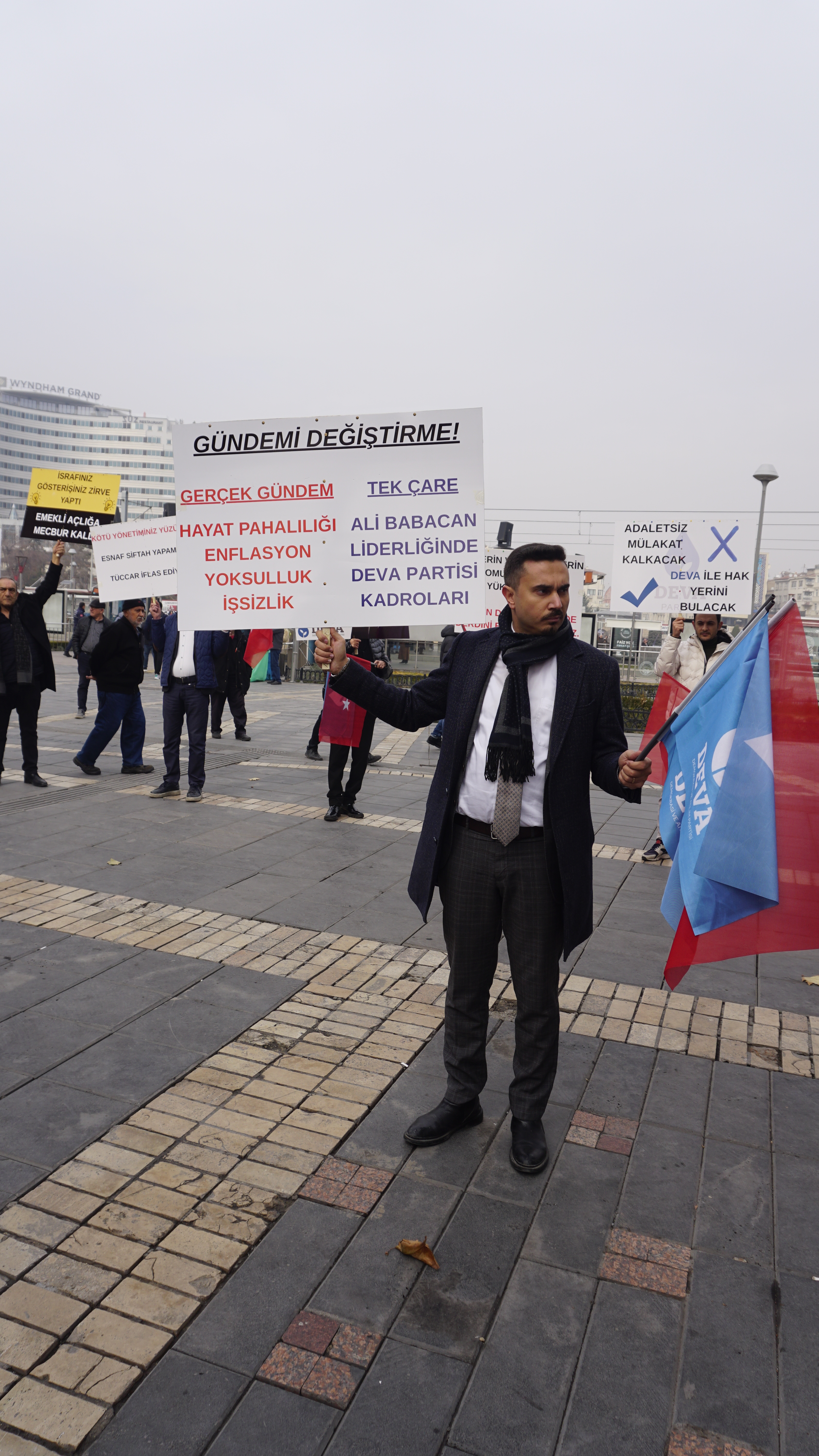 DEVA Partisi Kayseri İl Başkanlığı tarafından Bürüngüz Camii önünde düzenlenen sessiz protesto ve basın açıklaması, vatandaşların da katılımıyla gerçekleştirildi. Basın açıklamasını DEVA Partisi Kayseri İl Başkanı Avukat Muhammet Candan yaptı.