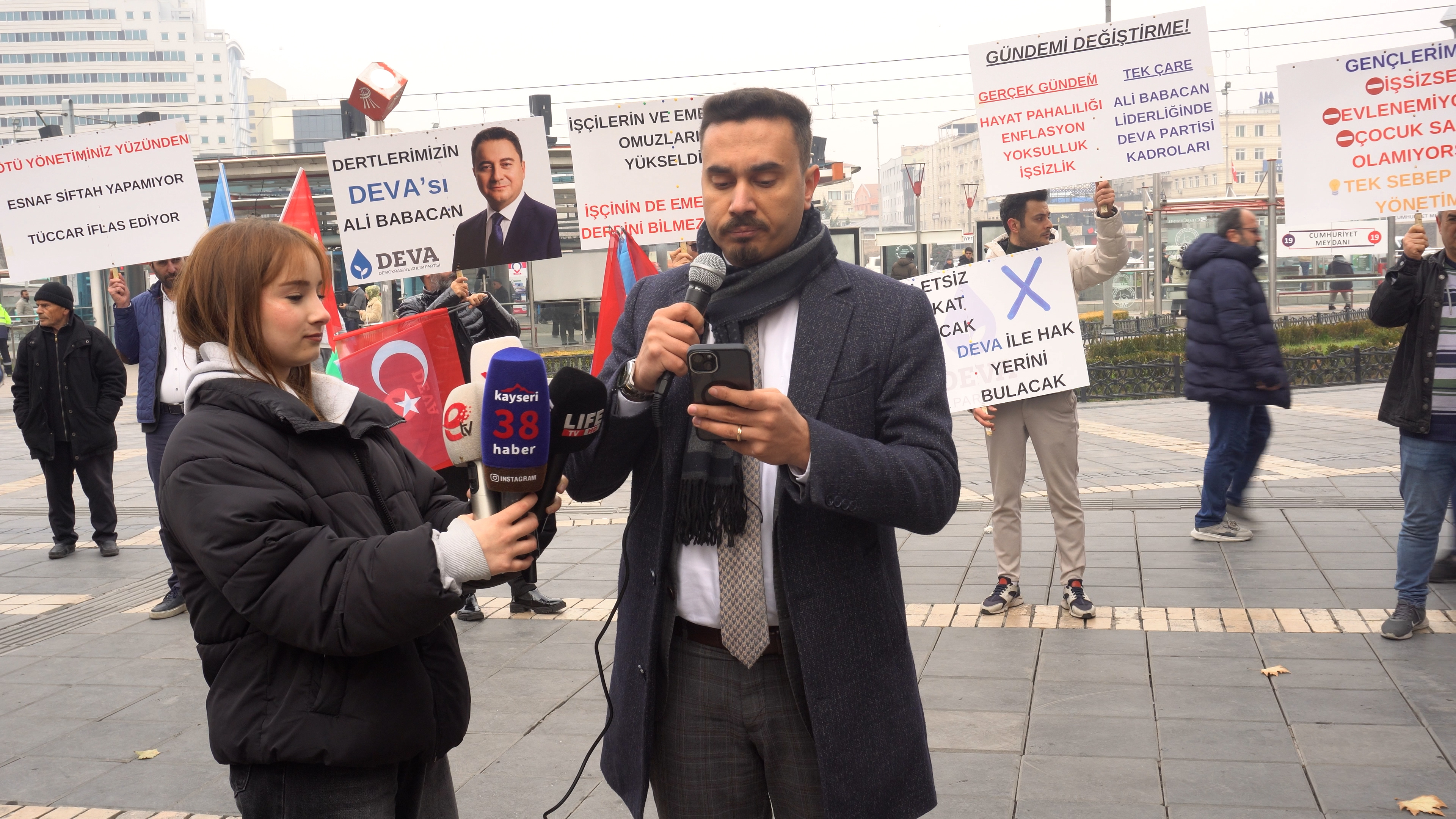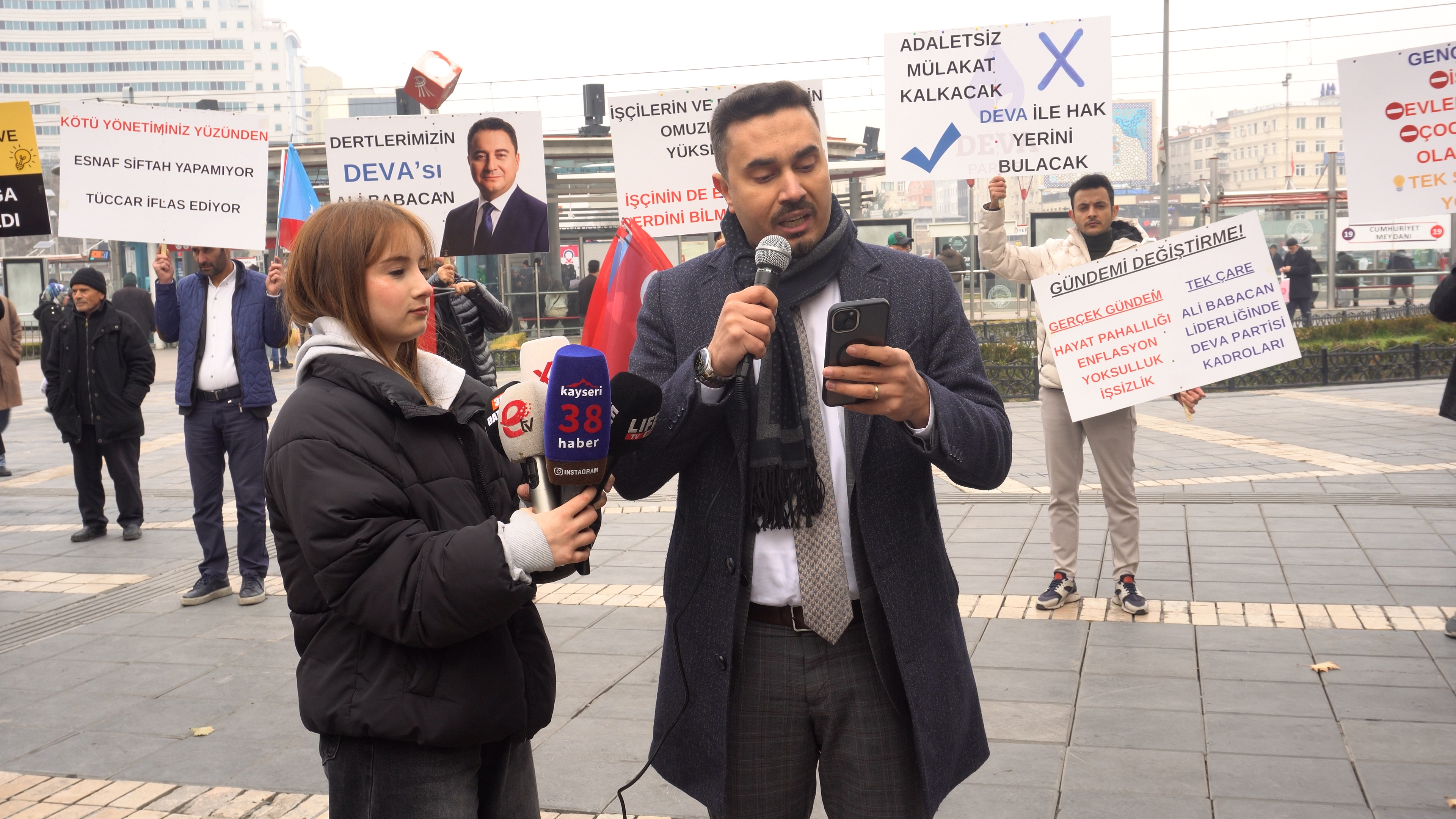 DEVA Partisi Kayseri İl Başkanlığı, Bürüngüz Camii önünde sessiz protesto ve basın açıklaması gerçekleştirdi. Açıklamayı İl Başkanı Avukat Muhammet Candan yaptı.