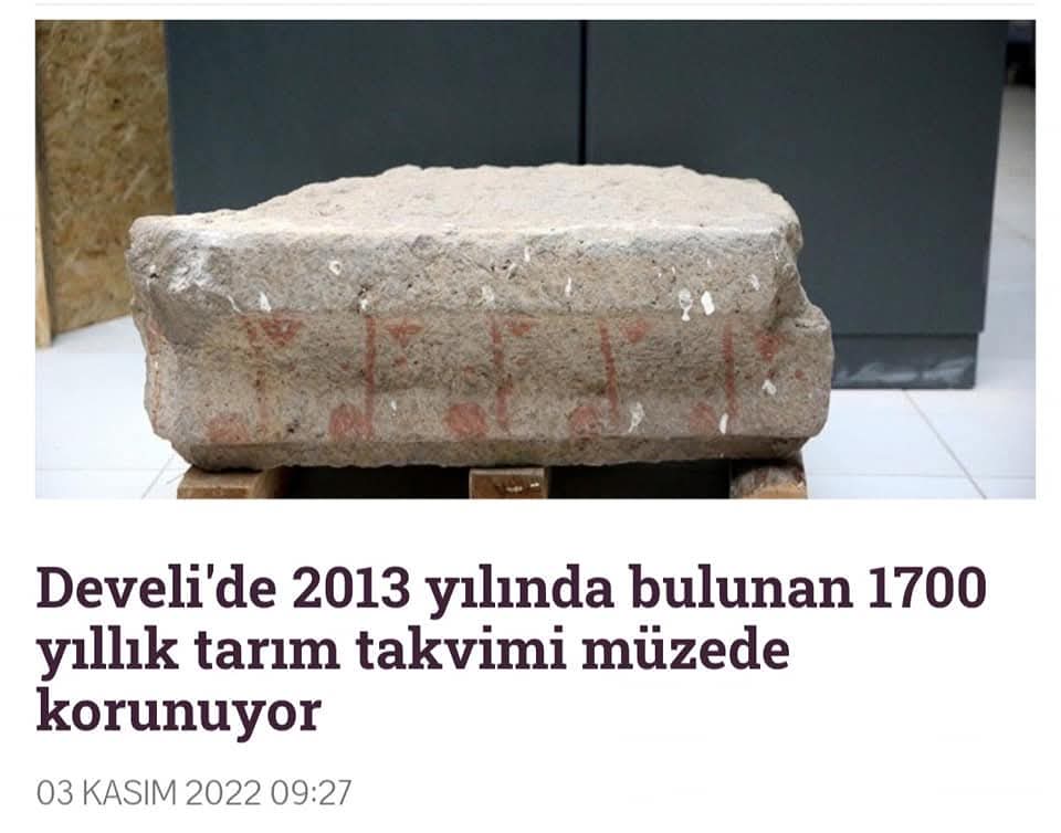 Develi'de 2013 yılında bulunan 1700 yıllık Roma dönemine ait tarım takvimi, Anadolu’daki tarım tarihinde önemli bir yer tutuyor. Kayseri Müze Müdürlüğü tarafından koruma altına alınan bu taşlar, türünün Anadolu'da bilinen tek örneği olması nedeniyle turizm açısından da büyük bir değer taşıyor. Gereme'de ortaya çıkan bu biyodinamik tarım takvimi, Roma döneminde tarım ve ziraat eğitiminin yapıldığına dair en önemli kanıt olarak kabul ediliyor.