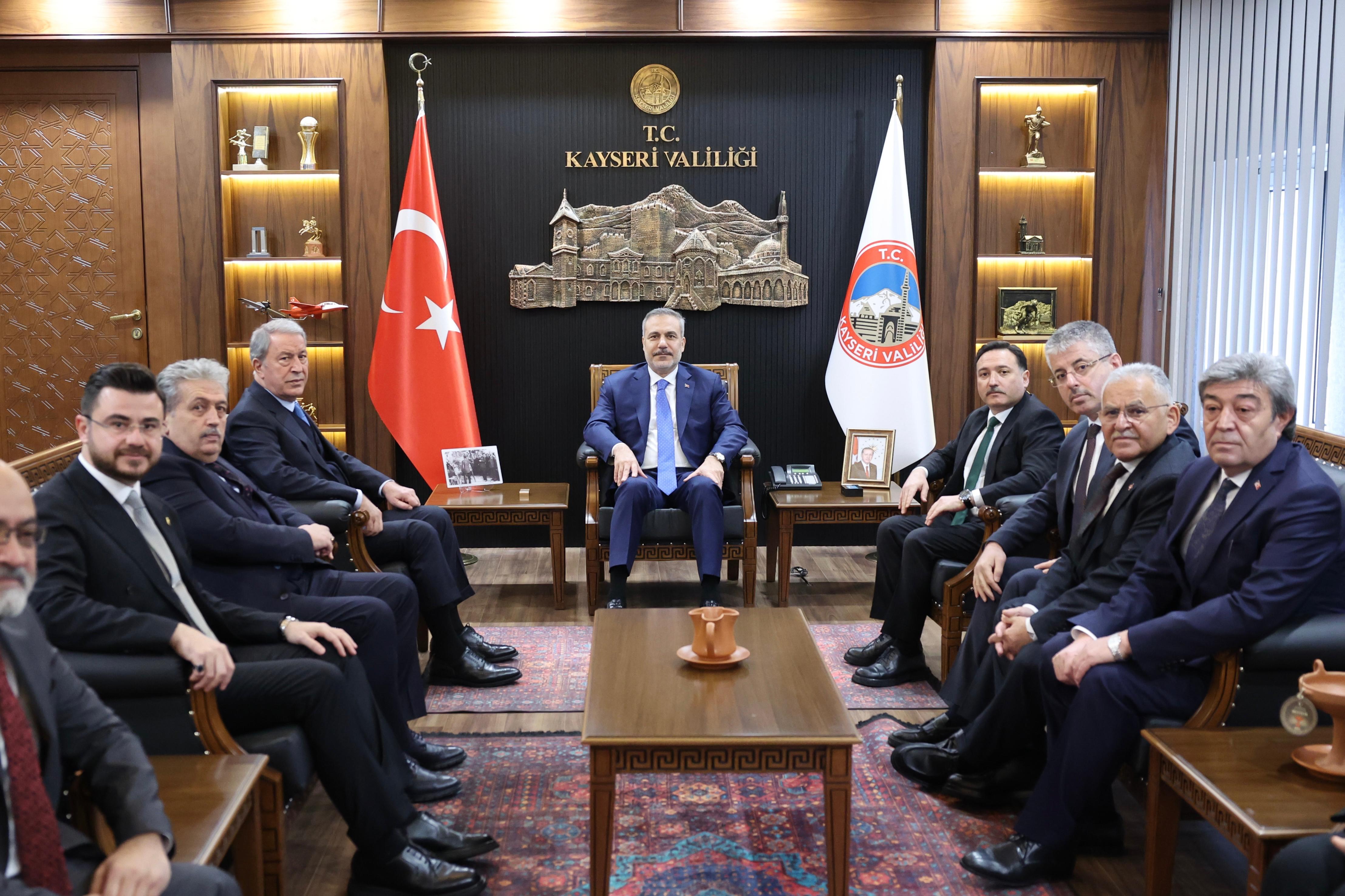 Dışişleri Bakanı Hakan Fidan, bir dizi çalışma ziyareti kapsamında ilimize gelerek Vali Gökmen Çiçek’i makamında ziyaret etti. Gerçekleşen ziyarette, kentte yürütülen çalışmalar hakkında değerlendirmelerde bulunuldu.