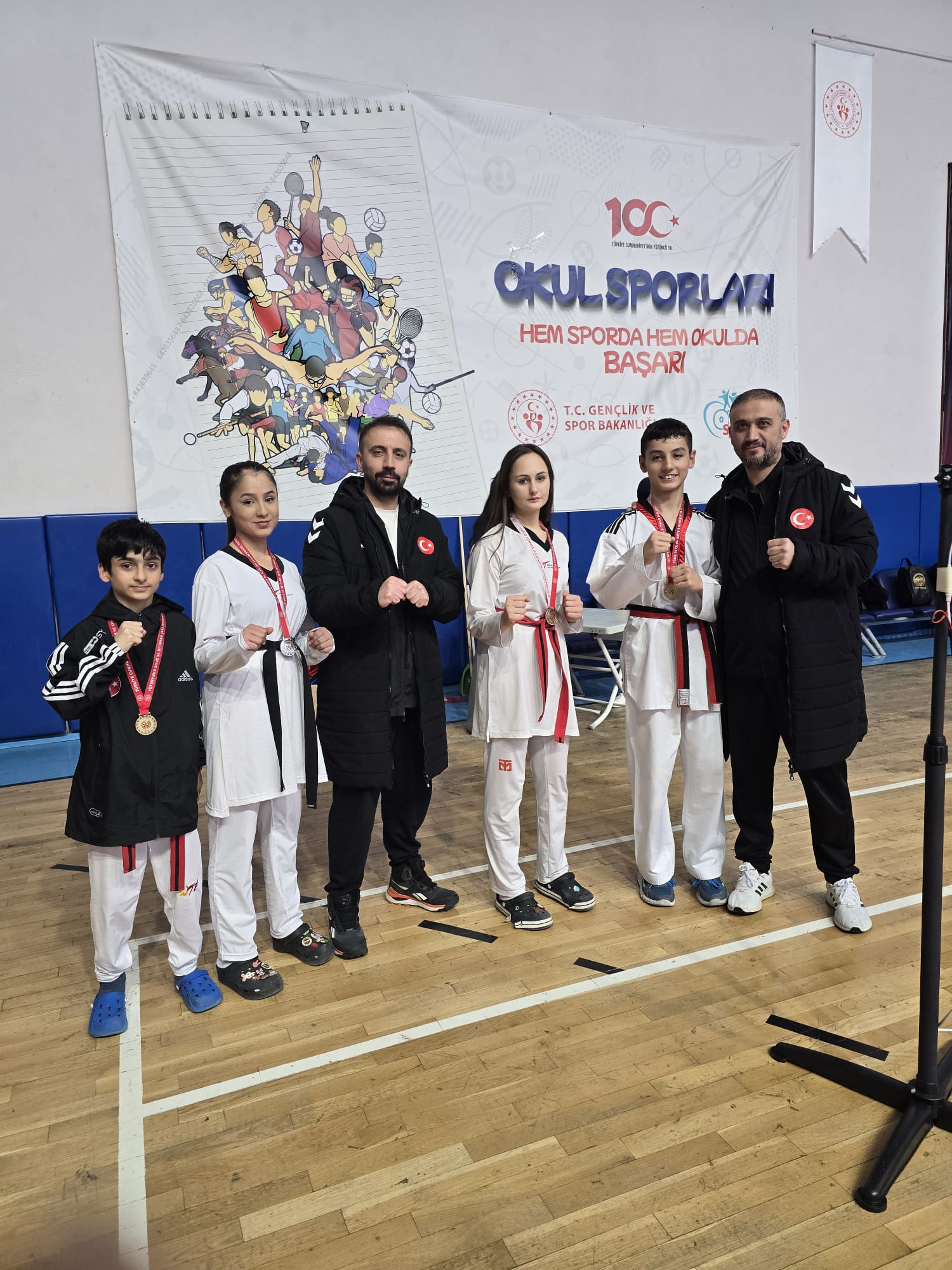 Kayseri’nin Talas ilçesinde 2-4 Mart 2026 tarihlerinde düzenlenen Okullar Arası (Ortaokul) Yıldızlar Taekwondo İl Seçmeleri Müsabakaları’nda Emniyet ERVA Spor Kulübü sporcuları göğsümüzü kabarttı. Toplum Destekli Polislik Şube Müdürlüğü bünyesinde faaliyet gösteren kulübün genç sporcuları, turnuvada 5 birincilik, 1 ikincilik ve 3 üçüncülük elde ederek toplam 9 madalya kazandı.