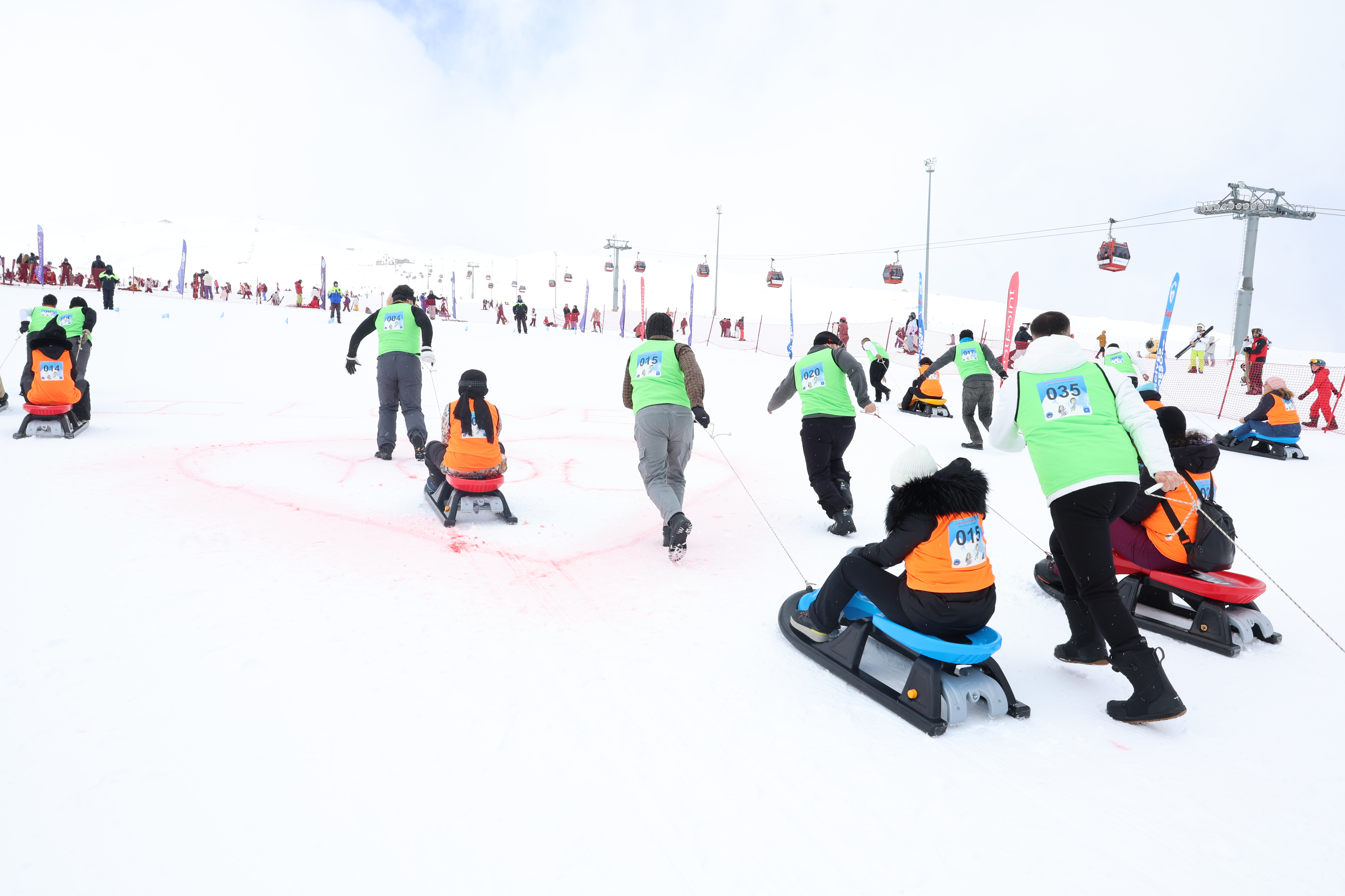 Kış sezonu boyunca düzenlenen etkinliklerle dikkat çeken Erciyes’te bu kez çiftler eğlence dolu bir rekabette buluştu. Yarışmada çiftler önce kızakla birbirlerini çekti, ardından ara vermeden birlikte kızakla kayarak parkuru tamamlama mücadelesi verdi.