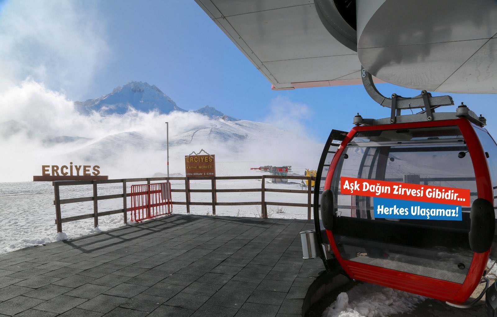 Erciyes Kayak Merkezi, teleferik deneyimini farklı bir konseptle birleştirdi. Merkez yetkilileri, “Teleferik arkasında yazı olsaydı nasıl olurdu?” sorusundan yola çıkarak çeşitli yazı ve tasarım denemeleri gerçekleştirdi.