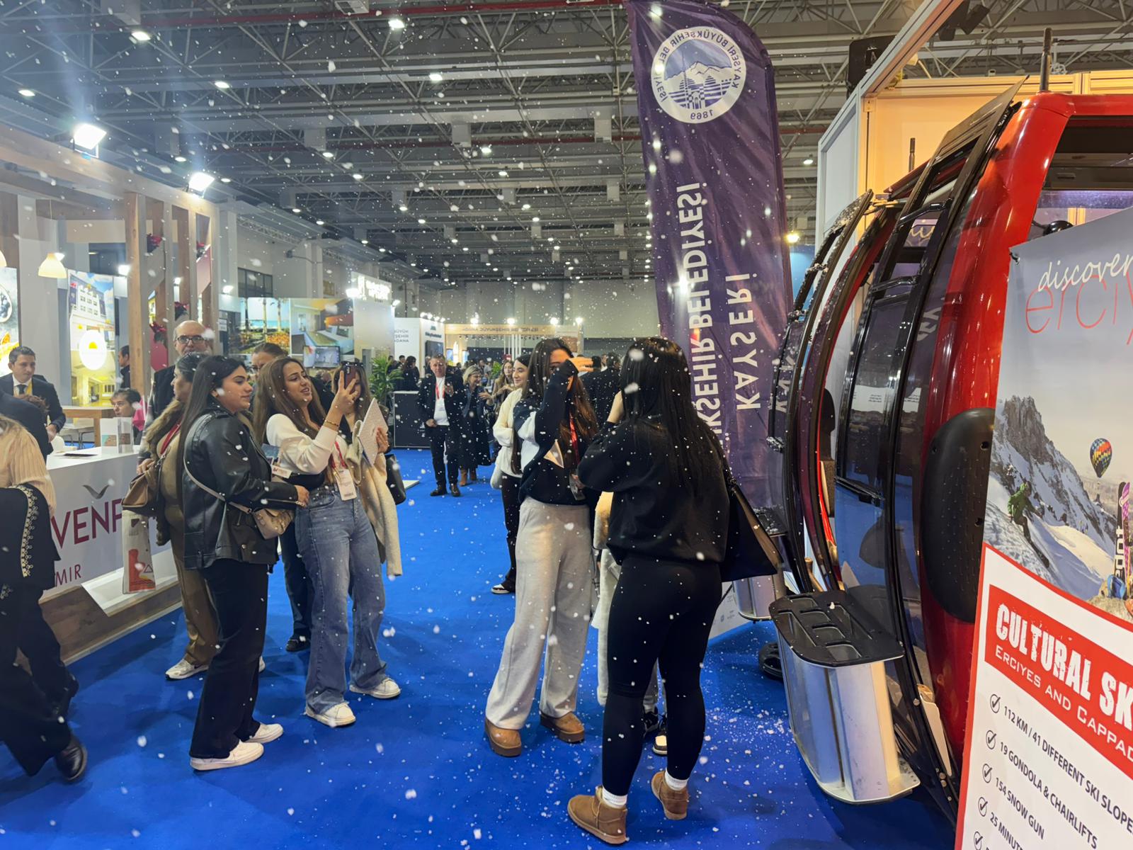 Erciyes standı, kış turizmi başta olmak üzere spor, doğa, kültür ve sağlık turizmi alanlarını kapsayan zengin içeriğiyle öne çıktı. Oran Kalkınma Ajansı ve Kayseri Otelciler Derneği iş birliğiyle, Erciyes A.Ş. destekleriyle hazırlanan stant, kabin gondol ve suni kar uygulamalarıyla ziyaretçilerin ilgisini çekti.