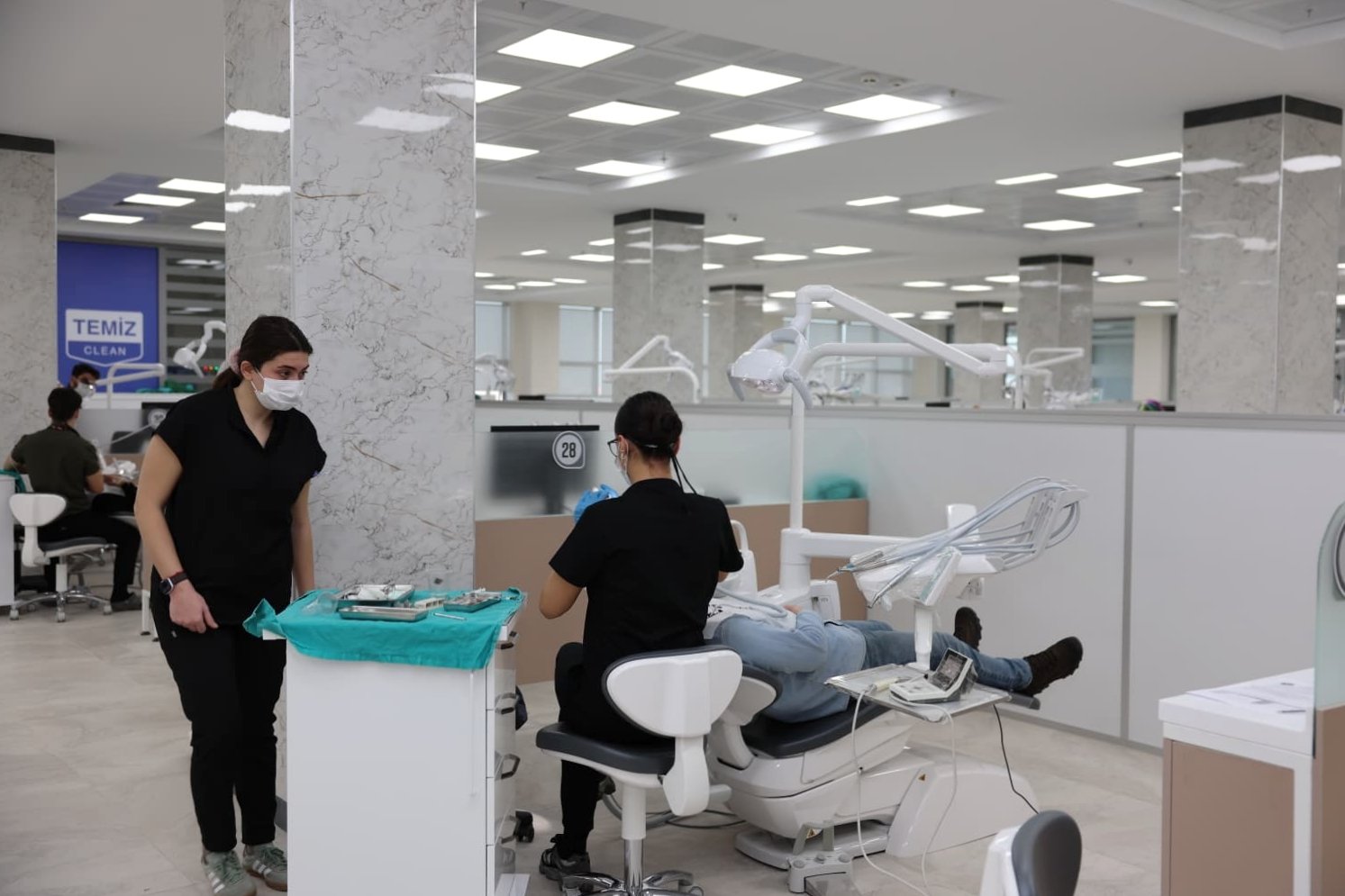 Türkiye’nin en büyük kapalı alanına sahip diş hastanesi ek binası olma özelliğini taşıyan yapı, toplam 41 bin metrekarelik alanıyla dikkat çekiyor. Aynı zamanda 399 ünite kapasitesiyle alanında en fazla üniteye sahip tesis olarak hizmet vermeye başladı.