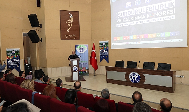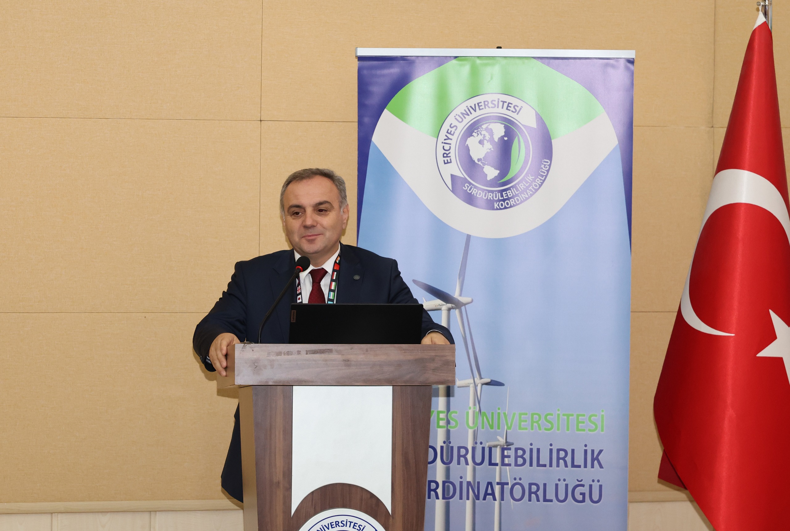 Saygı duruşu ve İstiklal Marşı’nın okunmasının ardından başlayan kongrenin açılışında konuşan ERÜ Rektörü Prof. Dr. Fatih Altun, sürdürülebilirliğin önemine vurgu yaptı. Altun, “Sürdürülebilirlik aslında her zaman var olmayı, devamlılığı ifade eder. Kaynaklarımız sınırsız değildir, bunları rastgele tüketemeyiz. Gelecek nesillere de bu kaynakları sağlıklı bir şekilde aktarmamız gerekir,” dedi.
