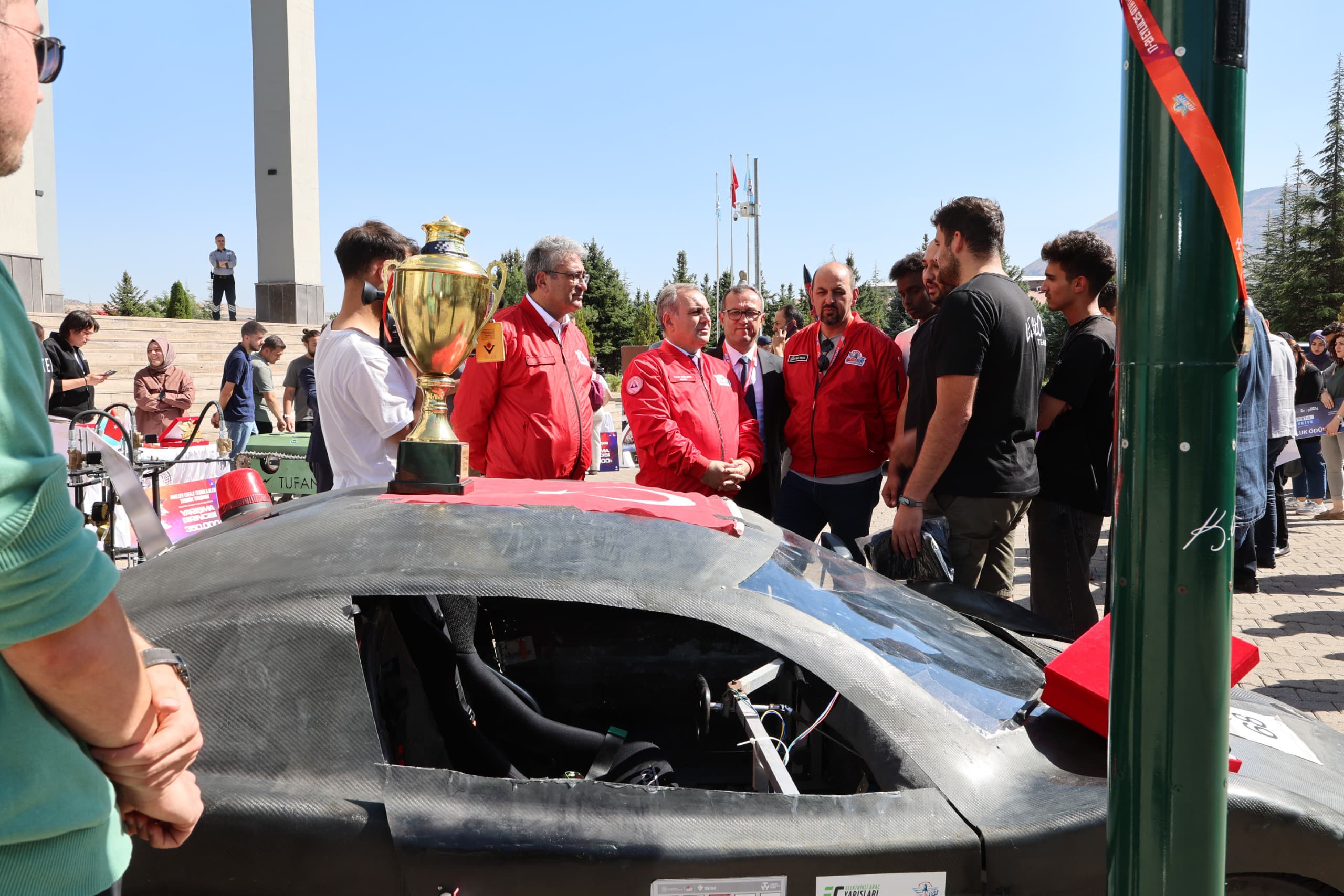 Öğrenciler tarafından yapılan her türlü Ar-Ge çalışmasının destekçisi olduklarına dikkat çeken Rektör Prof. Dr. Altun, “Ülkemizde her yıl düzenlenen TEKNOFEST yarışmalarına Erciyes Üniversitesi olarak yaklaşık 30 takımla katılım sağladık ve bu süreçte 12 civarında derece elde ettik. Gençlerimize her türlü desteği vermeye gayret ediyoruz. TEKNOFEST, öğrencilerimizin eğitimlerinin yanı sıra pratik hayatta mesleki gelişimlerine de büyük katkı sunuyor. Bu nedenle üniversitemizde yarışmalara katılan takım sayısını daha da artırmayı hedefliyoruz. Önümüzdeki süreçte de öğrencilerimizin yanında olmaya, onlara desteğimizi artırarak sürdürmeye devam edeceğiz. Üniversitemize ve ülkemize hayırlı olmasını diliyor, TEKNOFEST’e emeği geçen herkese teşekkür ediyorum. Erciyes Üniversitesi olarak, araştırma üniversitesi kimliğimizle ülkemizin ihtiyaç duyduğu alanlarda çalışmalar yürütmeye ve insan kaynağı geliştirmeye devam edeceğiz” diye konuştu.