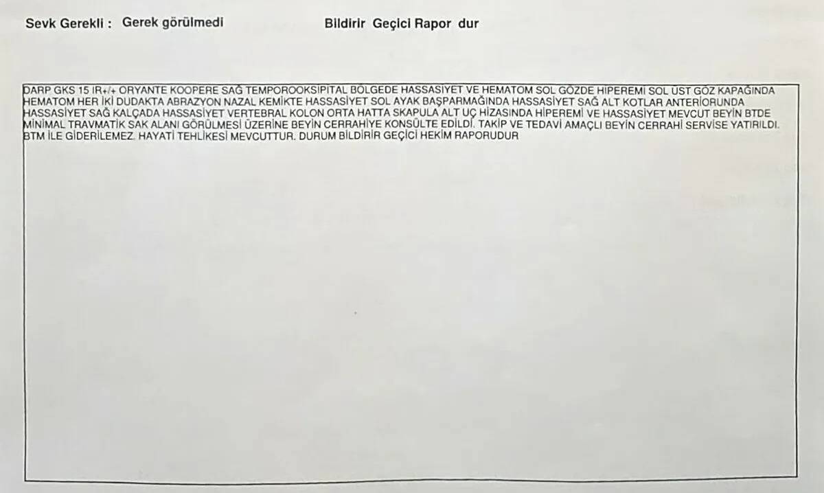 Baş, yüz, sırt ve kaburga bölgesindeki darp izlerinin yanı sıra çeşitli noktalarda hematom ve hassasiyet tespit edildiği bildirildi. Cerrahi serviste izlenmesi gerektiği rapora yansıdı. “Tutuklansın” Talebi Habere göre Hilal Konaç, ifadesinde 6284 sayılı kanun hakkında bilgilendirildiğini ve koruma tedbirleri istediğini belirtti. Ayrıca, eşinin eylemlerinin “hayati tehlikeye yol açtığını” söyleyerek Mustafa Konaç’ın tutuklanmasını talep etti.Olayla ilgili soruşturmanın sürdüğü belirtiliyor. Eski Baro Başkan Yardımcısı Fevzi Konaç’ın Oğlu Eşini Darp İddiasıyla Tutuklandı Kayseri’de, eski Baro Başkan Yardımcısı Fevzi Konaç’ın oğlu Mustafa Konaç, yaklaşık 25 gün önce evlendiği eşi Hilal Konaç’ı darp ettiği iddiasıyla gözaltına alındıktan sonra çıkarıldığı mahkemece tutuklandı.Şikâyetin ardından polis ekiplerince gözaltına alınan Mustafa Konaç, emniyetteki işlemlerinin ardından sevk edildiği adliyede çıkarıldığı nöbetçi mahkemece tutuklanarak cezaevine gönderildi. Olayla ilgili soruşturma sürüyor.