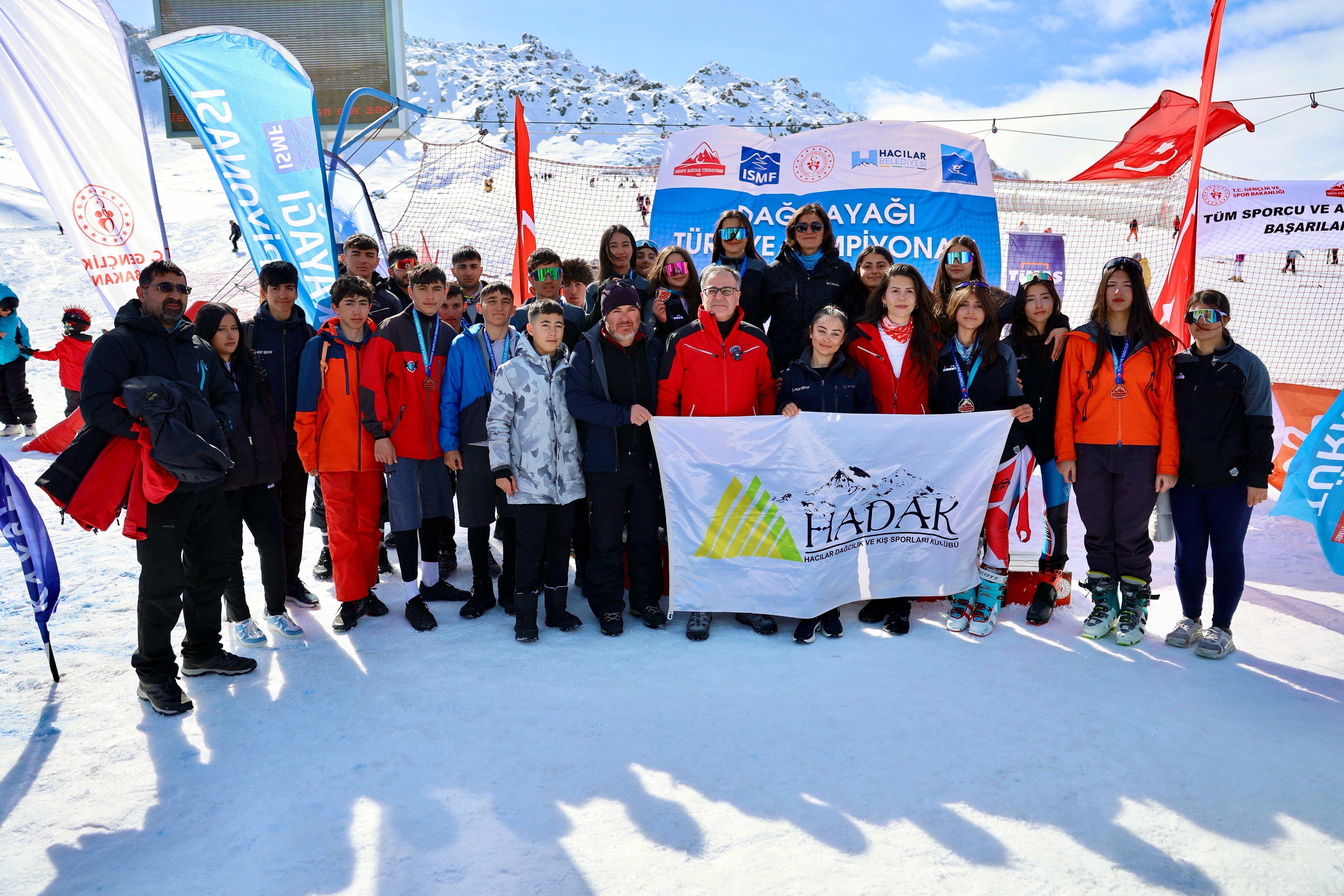 HADAK, Erciyes Hacılar Kapı’da düzenlenen Dağ Kayağı Türkiye Şampiyonası’nda büyük bir başarıya imza atarak toplam 18 madalya kazandı. Sporcular bireysel ve dikey yarışlarda kürsüye çıkarken, HADAK sezonun en dikkat çeken kulüplerinden biri oldu. Bu başarının ardından sporcular, alpin disiplini yarışmalarına odaklanarak yoğun bir antrenman programına girdi.