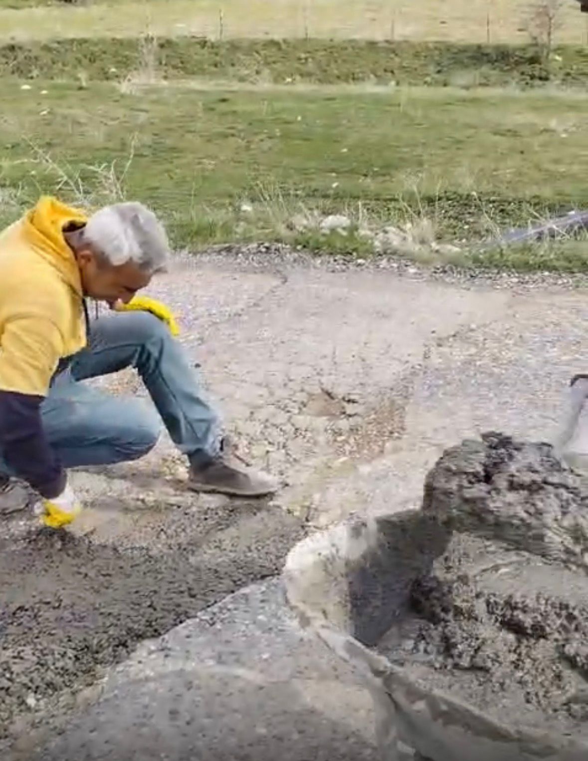 Belediye Değil, Mahalleli Devreye Girdi Araçların alt takımına zarar veren ve ulaşımı olumsuz etkileyen derin çukurlar için resmi kurumlardan bekledikleri adımı bulamayan Çanakpınar sakinleri, kolları sıvadı. Kendi aralarında topladıkları malzemelerle beton harcı hazırlayan vatandaşlar, yolun en riskli noktalarını kendi elleriyle doldurdu.