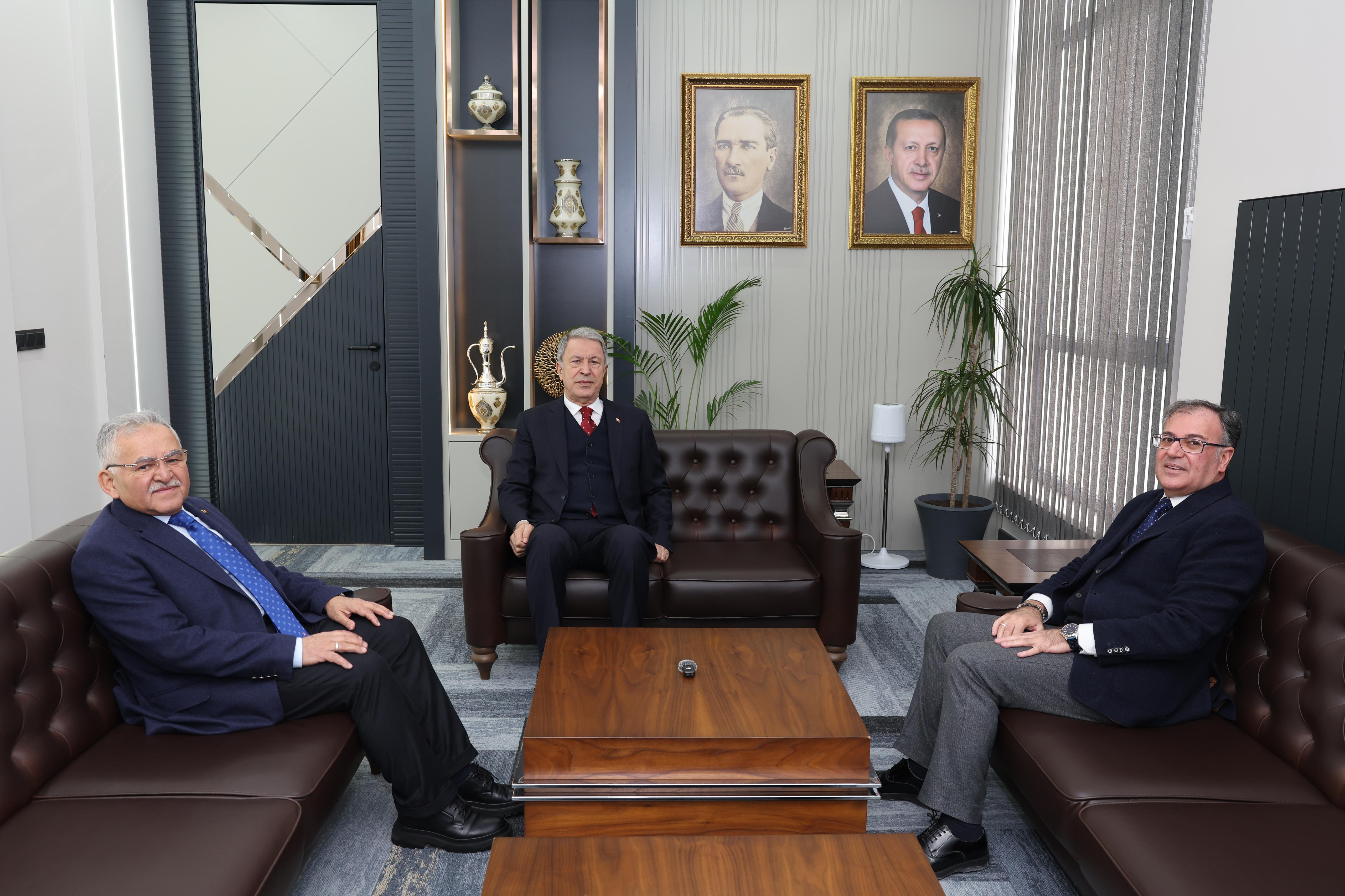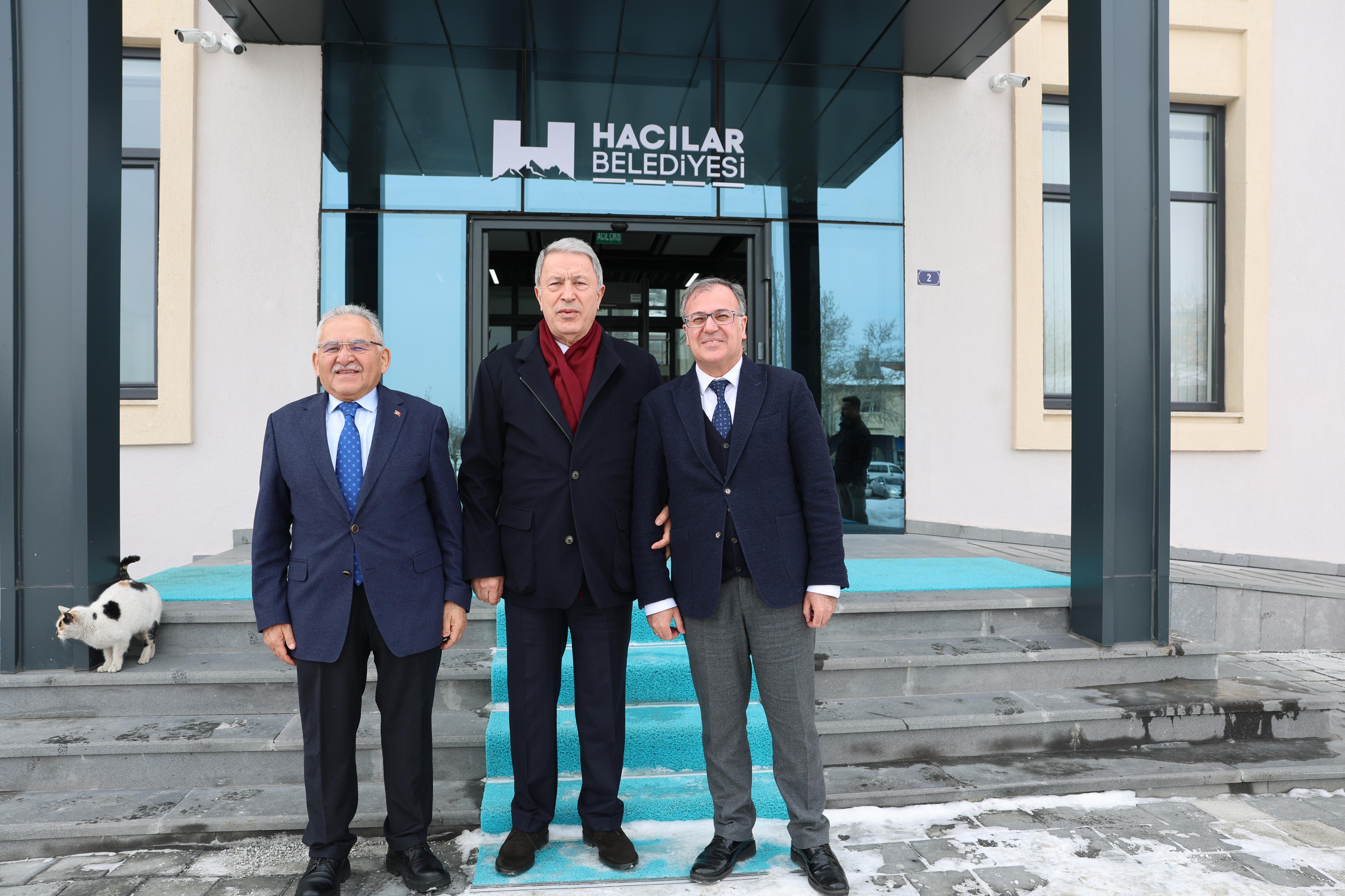 TBMM Millî Savunma Komisyonu Başkanı ve AK Parti Kayseri Milletvekili Hulusi Akar, Kayseri Büyükşehir Belediye Başkanı Memduh Büyükkılıç ile birlikte Hacılar Belediye Başkanı Bilal Özdoğan’ı makamında ziyaret etti. Ziyaret kapsamında, ilçede devam eden projeler değerlendirildi ve yeni yatırımlar üzerine istişarelerde bulunuldu.