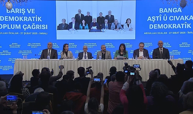 DEM Parti heyeti bugün İmralı'da yaptığı görüşmenin ardından İstanbul'da basın açıklaması yaptı. Açıklamada "Barış ve Demokratik Toplum Çağrısı PKK; tarihin en yoğun şiddet yüzyılı olan 20. asrı, iki dünya savaşı, reel-sosyalizm ve dünya genelinde yaşanan soğuk savaş ortamları, Kürt realitesinin inkarı, başta ifade olmak üzere özgürlükler konusunda yasaklardan kaynaklı oluşan zeminde doğmuştur. Teori, program, strateji ve taktik olarak yüzyılın reel-sosyalist sistem gerçeğinin ağır etkisinde kalmıştır. 1990'larda reel-sosyalizmin iç nedenlerle çöküşü ve ülkede kimlik inkarının çözülüşü, ifade özgürlüğünde sağlanan gelişmeler, PKK'nın anlam yoksunluğuna ve aşırı tekrara yol açmıştır. Dolayısıyla ömrünü benzerleri gibi tamamlamış ve feshini gerekli kılmıştır. Kürt-Türk ilişkileri; 1000 yılı aşan tarihler boyunca Türkler ve Kürtler, varlıklarını sürdürmek ve hegemonik güçlere karşı ayakta kalmak için gönüllülük yönü ağır basan, hep bir ittifak içinde kalmayı zorunlu görmüşlerdir. Kapitalist modernitenin son 200 yılı, bu ittifakı parçalamayı esas gaye edinmiştir. Etkilenen güçler, sınıf temelleriyle birlikte buna hizmeti esas bellemişlerdir. Cumhuriyetin tek tipçi yorumlarıyla birlikte bu süreç hızlanmıştır. Günümüzde çok kırılgan hâl alan tarihsel ilişkiyi, kardeşlik ruhu içinde inançları da göz ardı etmeden yeniden düzenlemek esas görevdir. Demokratik toplum ihtiyacı kaçınılmazdır. Cumhuriyet tarihinin en uzun ve kapsamlı isyan ve şiddet hareketi olan PKK'nın; güç ve taban bulması, demokratik siyaset kanallarının kapalı olmasından kaynaklanmıştır. Aşırı milliyetçi savruluşunun zorunlu sonucu olan; ayrı ulus-devlet, federasyon, idari özerklik ve kültüralist çözümler, tarihsel toplum sosyolojisine cevap olamamaktadır. Kimliklere saygı, kendilerini özgürce ifade edip, demokratik anlamda örgütlenmeleri, her esimin kendilerine esas aldıkları sosyo-ekonomik ve siyasal yapılanmaları ancak demokratik toplum ve siyasal alanın mevcudiyetiyle mümkündür. Cumhuriyetin ikinci yüzyılı ancak demokrasiyle taçlandırıldığında kalıcı ve kardeşçe bir sürekliliğe sahip olabilecektir. Sistem arayışları ve gerçekleştirmeler için demokrasi dışı bir yol yoktur. Olamaz. Demokratik uzlaşma temel yöntemdir. Barış ve demokratik toplum döneminin dili de gerçekliğe uygun geliştirilmek durumundadır. Sayın Devlet Bahçeli'nin yaptığı çağrı, Sayın Cumhurbaşkanın ortaya koyduğu iradeyle diğer siyasi partilerin malum çağrıya dönük olumlu yaklaşımlarıyla oluşan bu iklimde silah bırakma çağrısında bulunuyor ve bu çağrının tarihi sorumluluğunu üstleniyorum. Varlığı zorla sona erdirilmemiş her çağdaş cemiyet ve partinin gönüllü olarak yapacağı gibi devlet ve toplumla bütünleşme için kongrenizi toplayın ve karar alın; tüm gruplar silah bırakmalı ve PKK kendini feshetmelidir. Ortak yaşama inanan ve çağrıma kulak veren tüm kesimlere selamlarımı iletirim." ifadeleri yer aldı