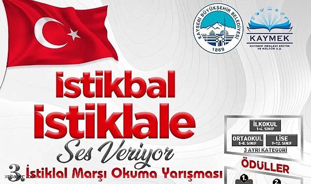 Kayseri Büyükşehir Belediyesi’ne bağlı Kayseri Mesleki Eğitim ve Kültür A.Ş. (KAYMEK), gençlerin milli ve manevi değerleri benimsemelerini sağlamak amacıyla üçüncü kez düzenlediği “İstikbal İstiklale Ses Veriyor” İstiklal Marşı Okuma Yarışması ile öğrencilere anlamlı bir platform sunuyor.