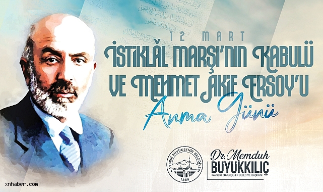 Kayseri Büyükşehir Belediye Başkanı Dr. Memduh Büyükkılıç, 12 Mart İstiklal Marşı’nın Kabulü ve Mehmet Akif Ersoy’u Anma Günü’nün 104. yıl dönümü dolayısıyla mesaj yayımladı. Başkan Büyükkılıç, İstiklal Marşı’nın, Türk milletinin Bağımsızlık ve özgürlük mücadelesinin sembolü olduğunu belirterek, Mehmet Akif Ersoy’u rahmet ve minnetle andı.