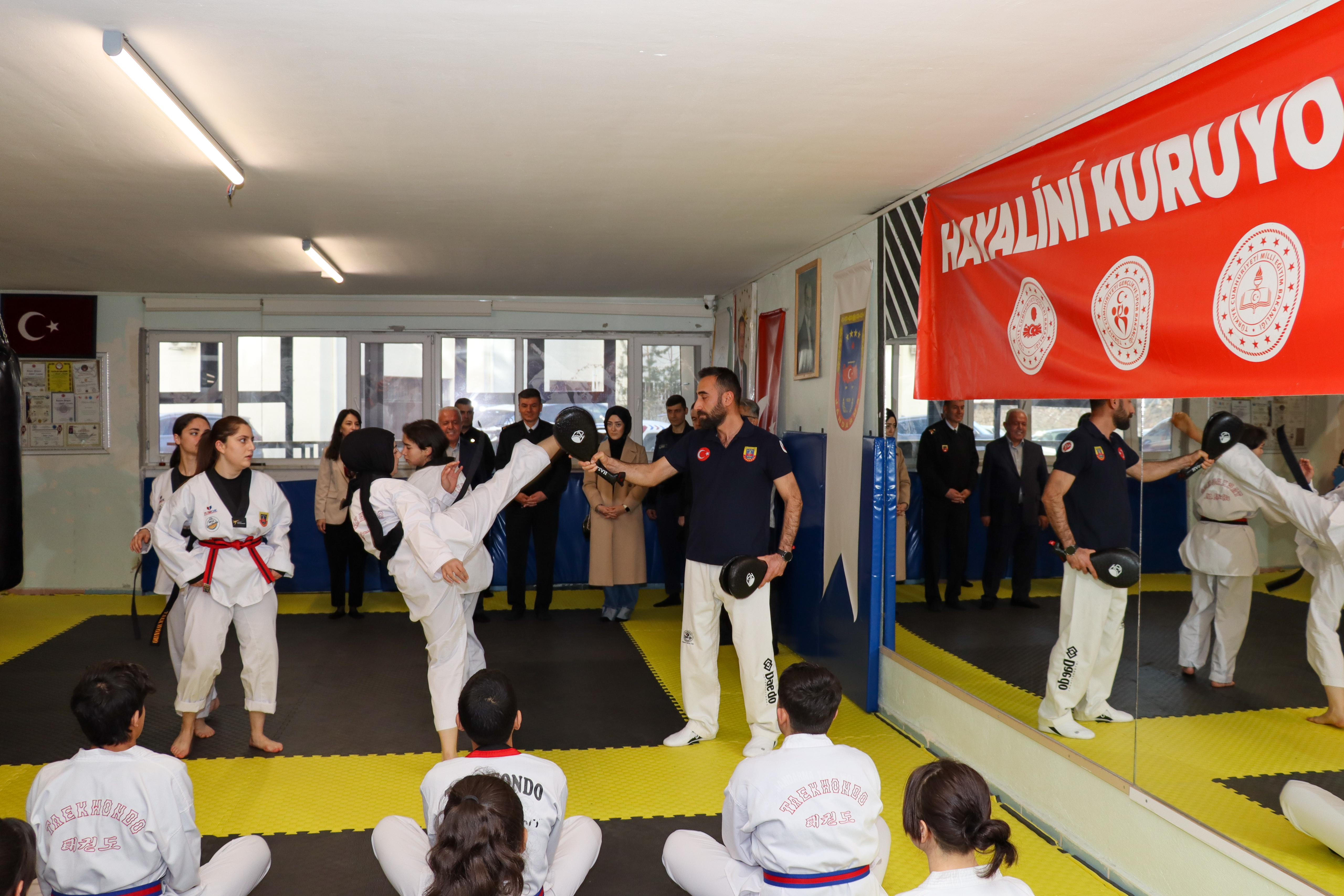 Ziyaret sırasında spor kulübünün genç sporcuları, antrenörleriyle birlikte hazırladıkları Taekwondo gösterisini sergiledi.