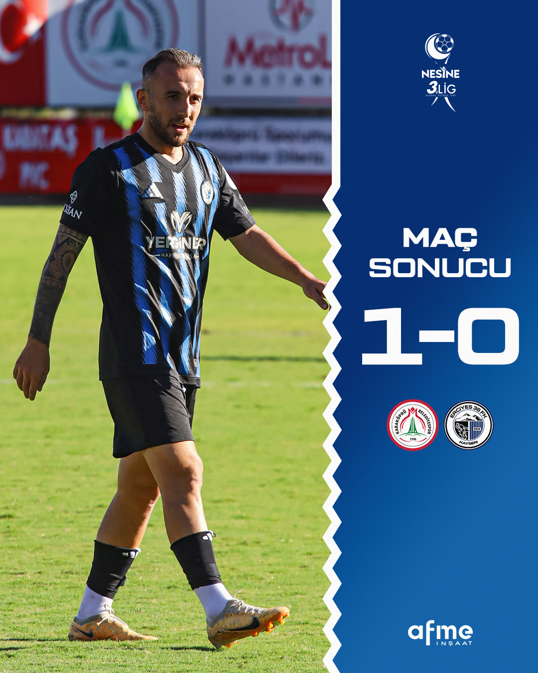 Henüz ligde galibiyetle tanışamayan ve gol sevinci yaşamayan Karaköprü, hızlı bir atak sonucu Erciyes 38 FK kaptanı İsmail’in kritik hatasından yararlandı. İsmail’in kalecisi Kadem Burak’a gönderdiği pas kısa kalınca araya giren Can, topu kalecinin üzerinden aşırdı. Direkten dönen topu takip eden Can, bu kez ağları havalandırarak Karaköprü’yü 1-0 öne taşıdı.