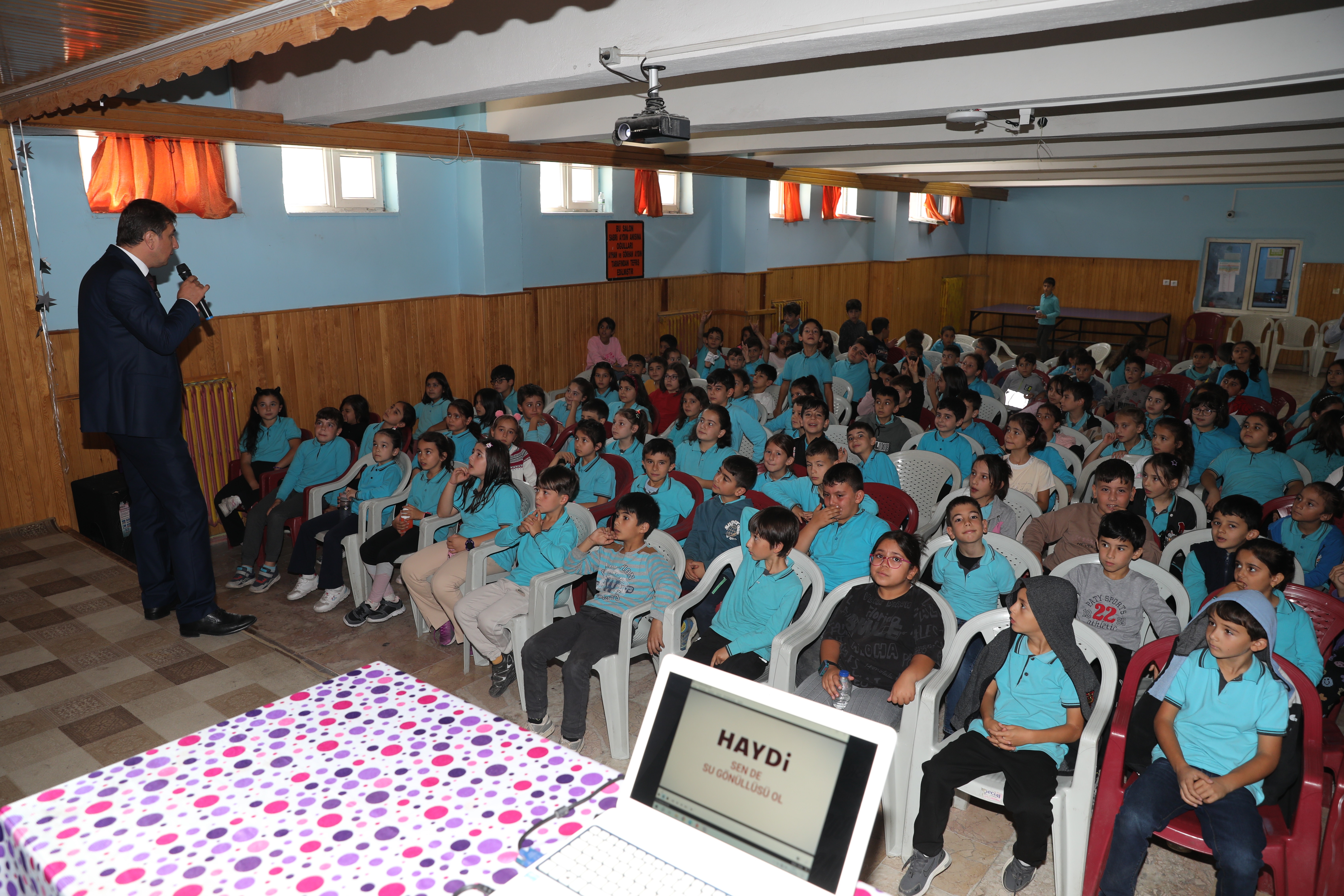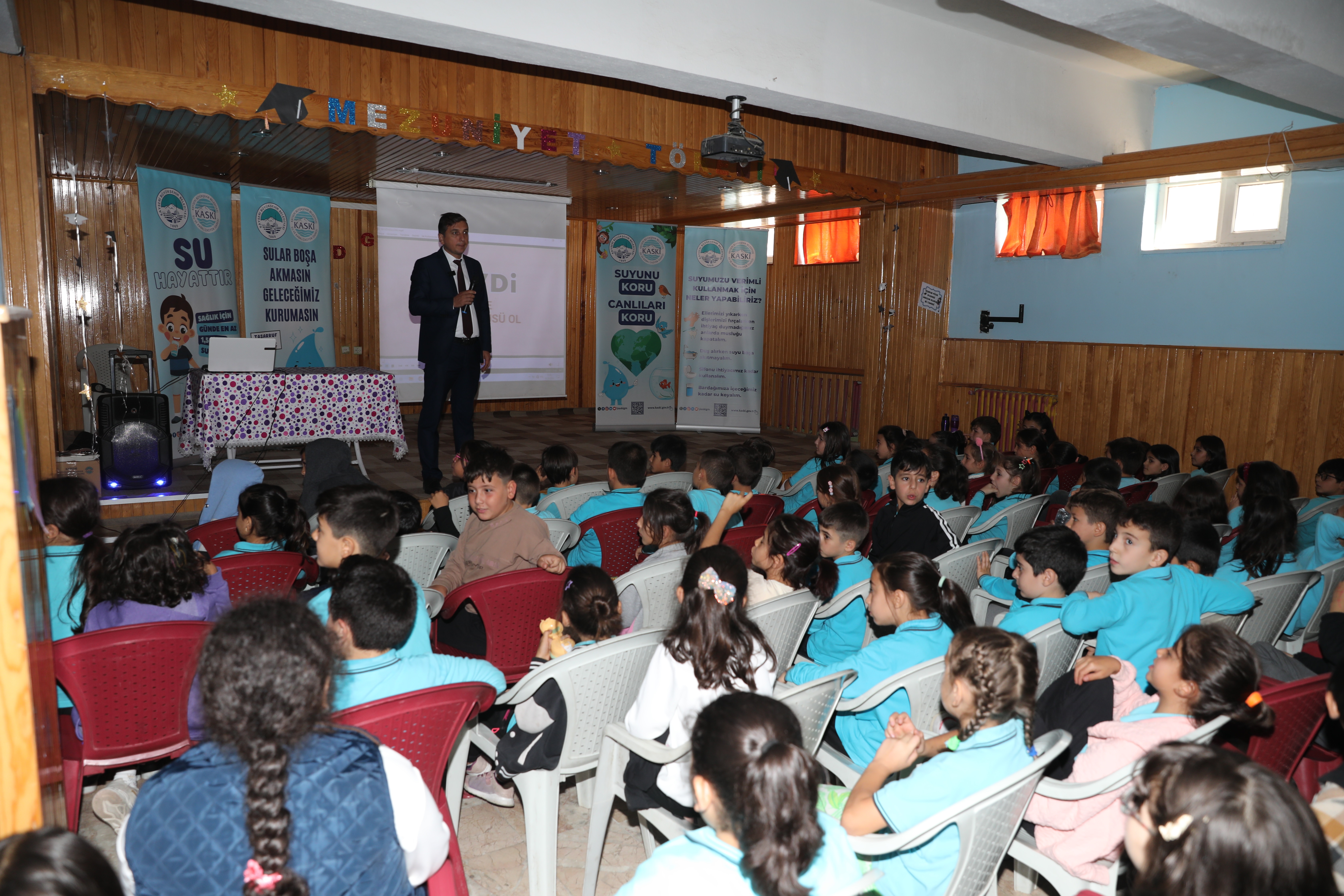 Öğrencilere çeşitli animasyonlarla desteklenen eğlenceli sunumlar eşliğinde su tasarrufunun önemini anlatan KASKİ, eğitim sonunda öğrencilere su tasarrufu temalı hediyeler dağıttı.
