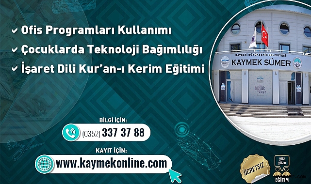 Kayseri Büyükşehir Belediyesi’ne bağlı KAYMEK, 2024 Güz Dönemi için dikkat çeken kurs seçenekleri sunmaya başladı. Ofis Programları Kullanımı, Çocuklarda Teknoloji Bağımlılığı ve İşaret Dili ile Kur’an-ı Kerim Eğitimi gibi kurslar büyük ilgi görüyor. Tüm kurslar ücretsiz olup, kayıtlar çevrimiçi olarak yapılabiliyor.