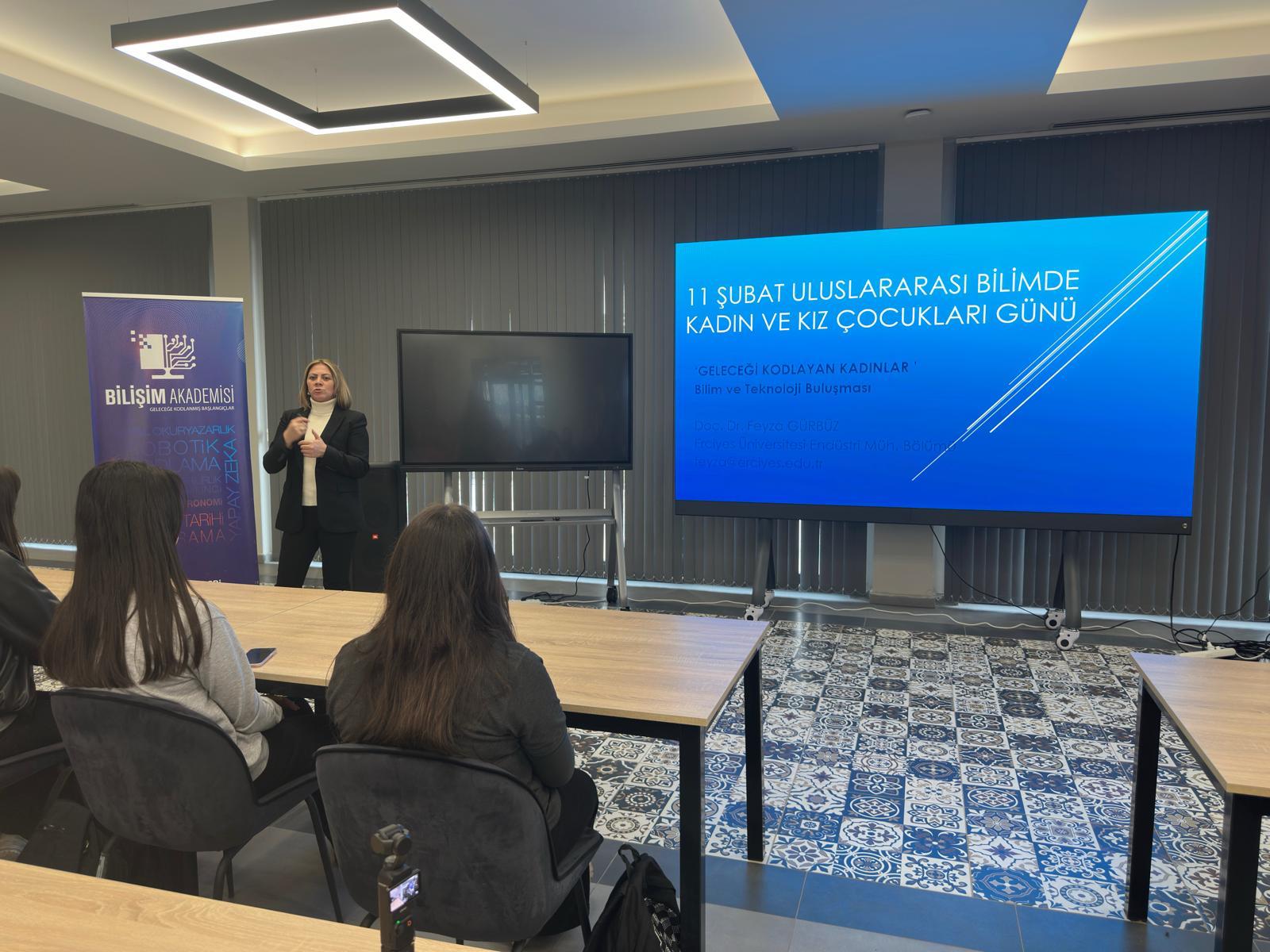 Akademisyenler, bilişim ve mühendislik alanlarında kadın temsilinin artırılmasının önemine dikkat çekti. Katılımcılarla kariyer deneyimlerini paylaşan konuşmacılar, genç kızlara STEM alanlarında ilham verdi.