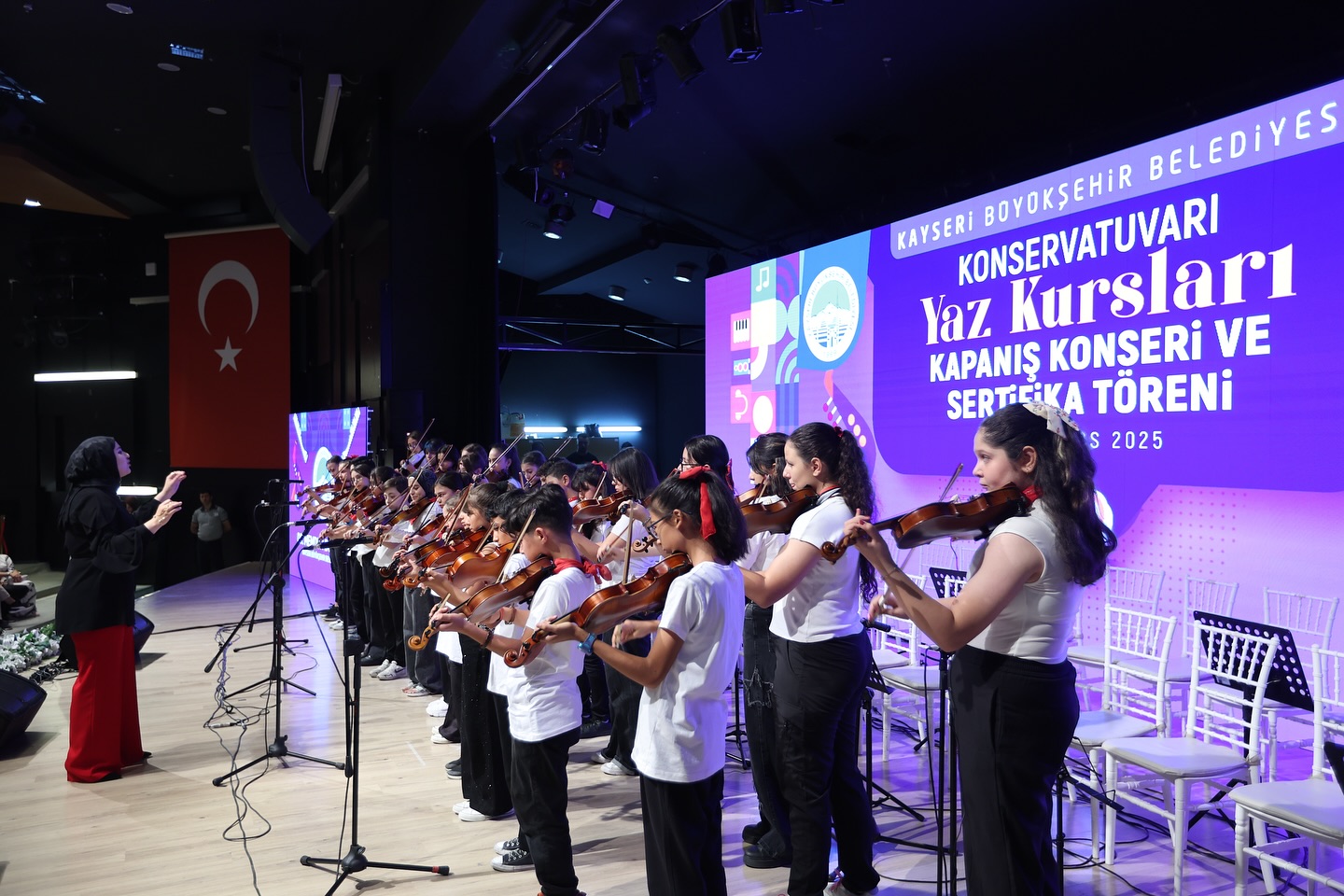 Törende kursiyerlere sertifikaları takdim edilirken, öğrencilerin performanslarıyla dolu dolu bir kapanış konseri gerçekleştirildi. AK Parti Kayseri Milletvekili Ayşe Böhürler de Başkan Büyükkılıç’ı başarılı çalışmalarından dolayı tebrik ederek, gençlerin sanatsal gelişimine verdiği desteğin önemini vurguladı.