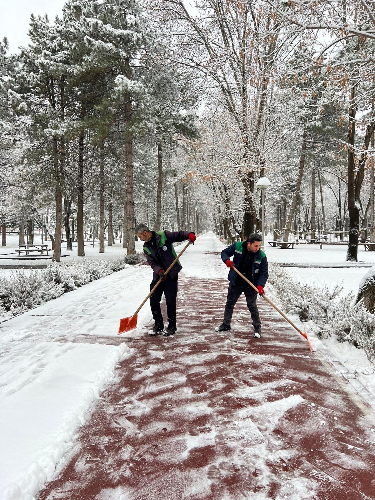 Kayseri’deki önemli yeşil alanlardan biri olan İnönü Parkı'nın 1, 2, 3 ve 4’üncü kısımları, Tuna Parkı, Gültepe Parkı, Kadir Has Kültür Parkı gibi parklarda da ekipler titizlikle çalışıyor. Bu alanlarda kar birikintilerinin temizlenmesi ve buzlanmanın engellenmesi için kesintisiz temizlik çalışmaları yürütülüyor.