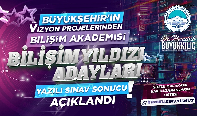 Kayseri Büyükşehir Belediyesi tarafından gençlerin bilişim teknolojileri, yazılım geliştirme, siber güvenlik, veri bilimi, robotik kodlama gibi alanlarda eğitim alarak geleceğe hazırlanması amacıyla hayata geçirilen Bilişim Akademisi’nde önemli bir adım daha atıldı. Belediye Başkanı Dr. Memduh Büyükkılıç’ın gençlere yönelik özel projelerinden biri olan Kayseri Bilişim Akademisi’nin yazılı sınav sonuçları açıklandı.21 Eylül 2024 Cumartesi günü gerçekleştirilen yazılı sınavı başarıyla geçen adaylar, sözlü mülakat hakkı kazandı. Sınavı geçen adayların listesi Kayseri Büyükşehir Belediyesi’nin resmi başvuru sitesi olan basvuru.kayseri.bel.tr adresinde yayımlandı. Sözlü mülakatlar, 28 Eylül 2024 Cumartesi günü, Milli Mücadele Müzesi’nde gerçekleştirilecek. Mülakatlar, Erciyes Üniversitesi ve Kayseri Üniversitesi’nden alanında uzman akademisyenler tarafından yapılacak.Bilişim Akademisi’nin Gençlere Katkıları