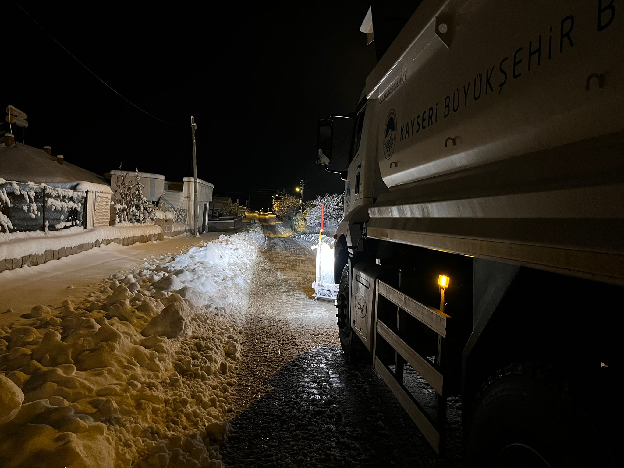 Kayseri genelinde etkili olan kar yağışı ve tipi sonrası Kayseri Büyükşehir Belediyesi ekipleri, kent merkezi ve kırsal ilçelerde karla mücadele çalışmalarını aralıksız sürdürüyor. Büyükşehir Belediyesi, ulaşımda aksama yaşanmaması amacıyla 7 gün 24 saat esasına göre sahada görev yapıyor.