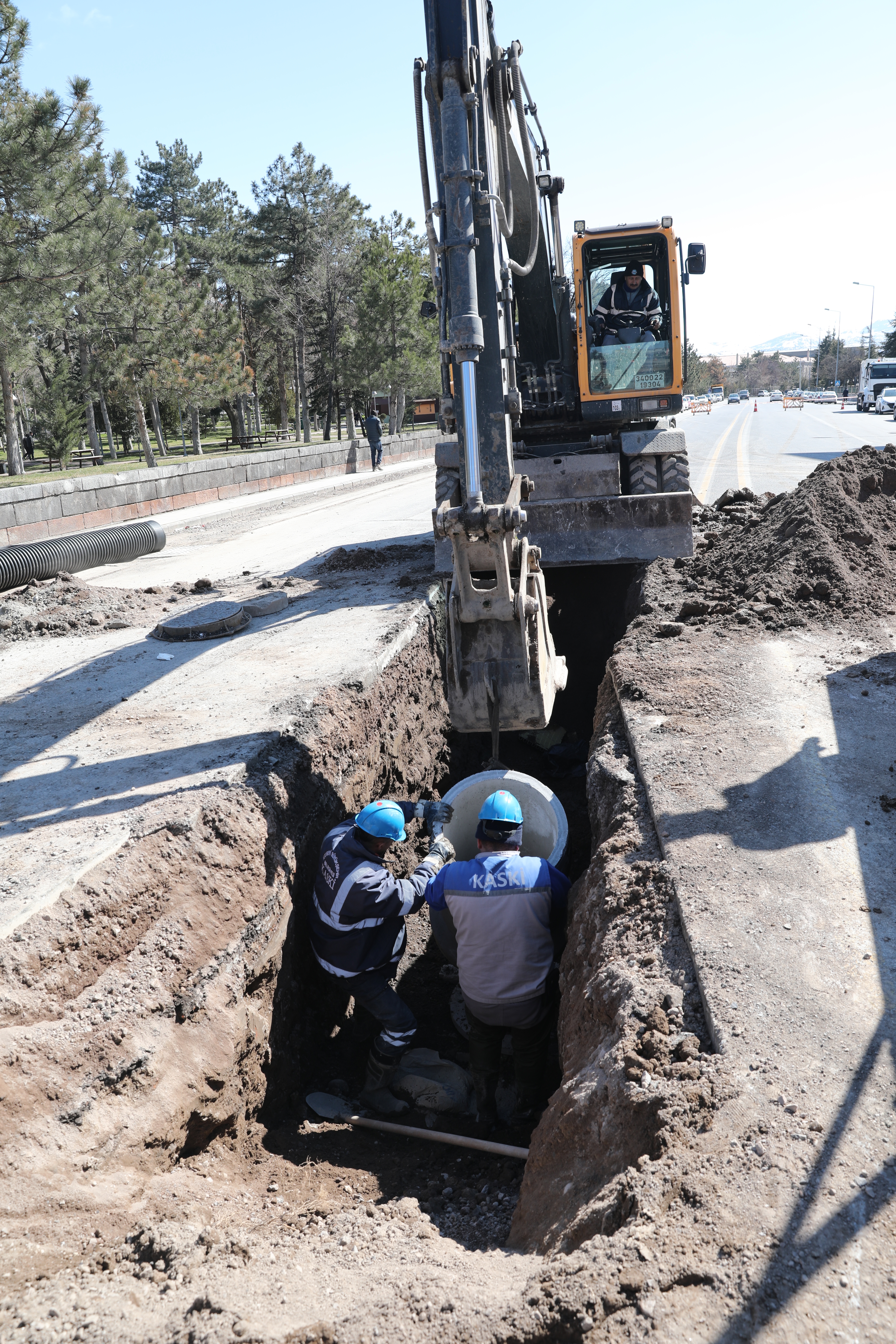Kayseri Büyükşehir Belediyesi, şehir genelinde altyapıyı güçlendirmeye yönelik yatırımlarını sürdürürken, Kartal Kavşağı Projesi’nin hayata geçirilebilmesi için bağlantı yollarındaki içme suyu, kanalizasyon ve yağmur suyu hatlarında deplase ve yeni hat döşeme çalışmaları gerçekleştiriyor.