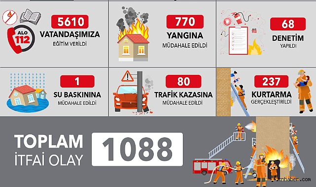 Kayseri Büyükşehir Belediyesi İtfaiye Daire Başkanlığı, Ekim ayında toplam bin 88 olaya müdahale ederek, yangınlardan trafik kazalarına, arama kurtarma operasyonlarından eğitim faaliyetlerine kadar geniş bir yelpazede görev yaptı. Ekipler, 770 yangın, 80 trafik kazası ve bir su baskınına müdahale ederken, 237 kurtarma çalışması gerçekleştirdi. Ayrıca, 5 bin 610 kişiye eğitim verip 68 denetim yapan itfaiye ekipleri, Kayseri ve çevresinde güvenliğin sağlanması için özveriyle çalışmaya devam ediyor