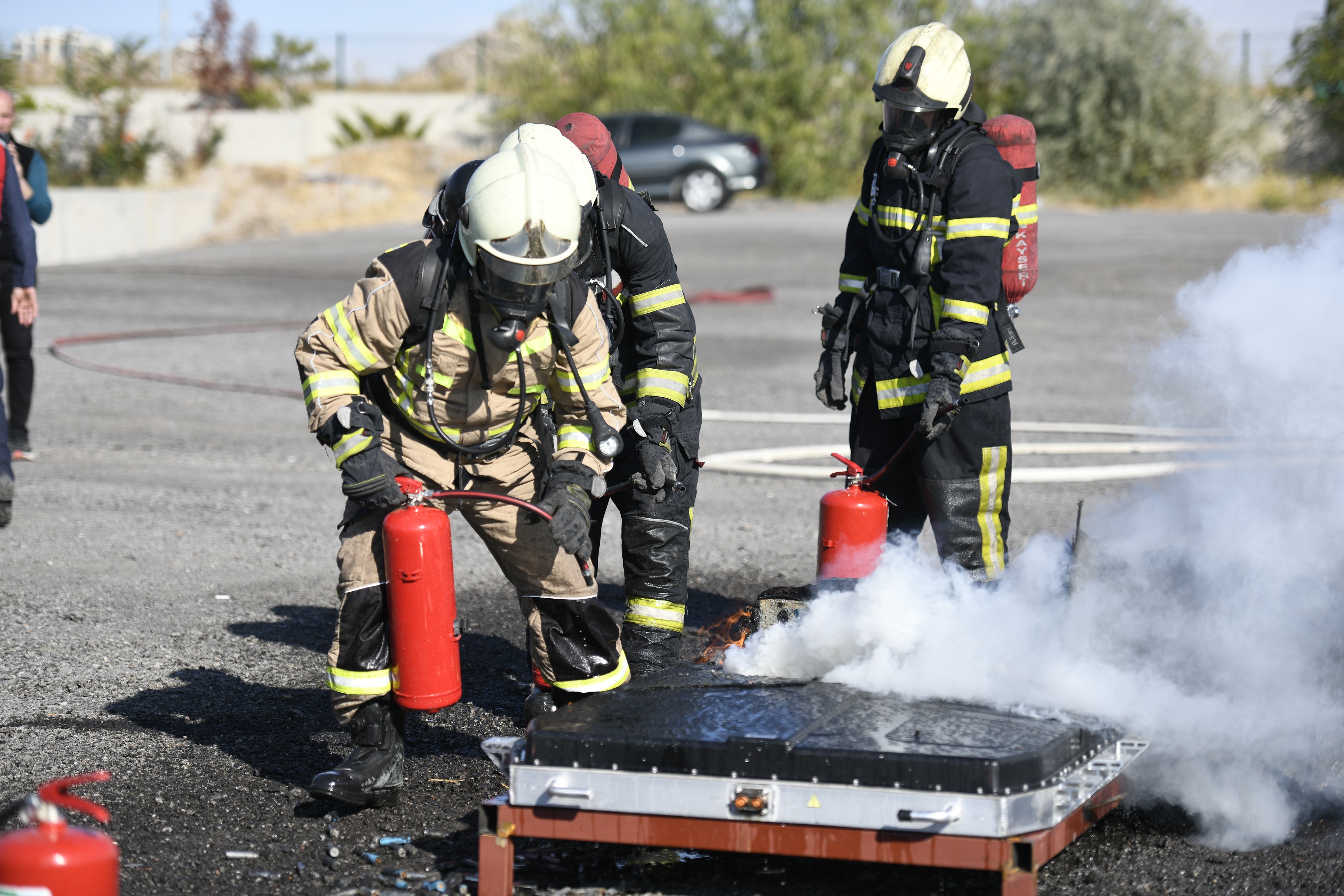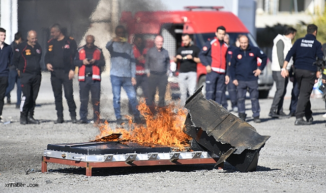 Kayseri Büyükşehir İtfaiyesi'nden Lityum İyon Batarya Yangın Tatbikatı